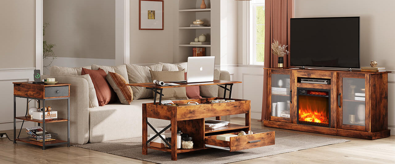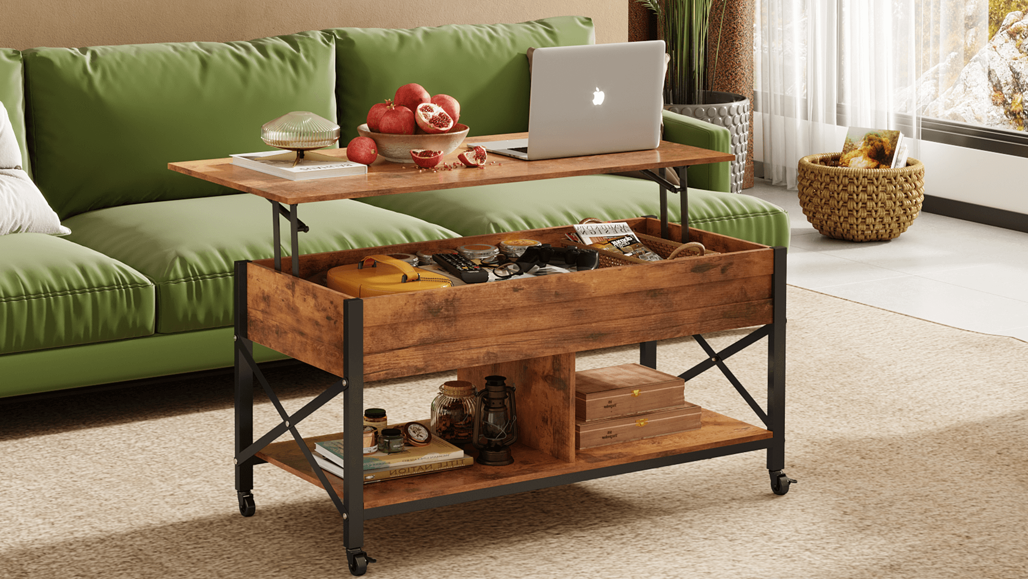 A Well-Made Mid-Century Beauty With Tons Of Storage And Functionality. Let work be out of sight and out of mind with this multipurpose coffee table. Flip it up to create a work station for your nine-to-five, then stow your laptop and other office essentials away in the hidden storage compartment for post-work entertaining.