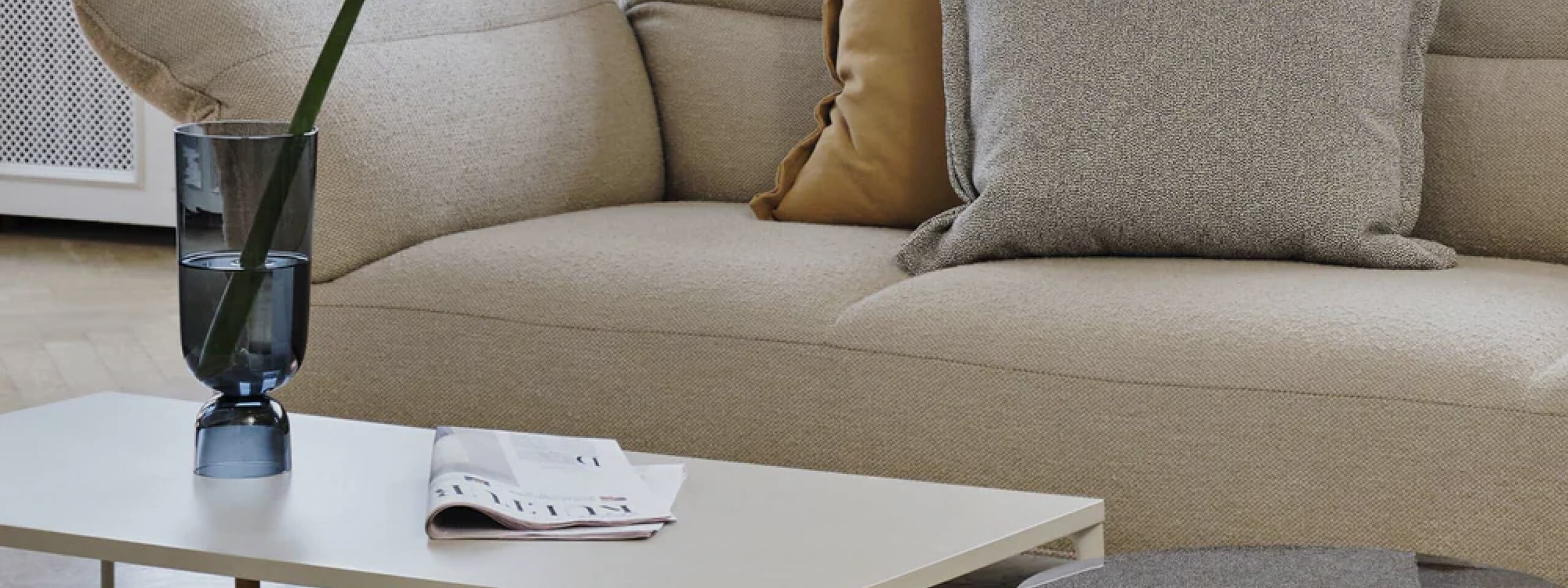 Upholstered outdoor sofas usually come with classic white or gray cushions. Use a bold outdoor area rug to define the seating area and add color. If you'd prefer for your outdoor lounge furniture to be the star of the show, you can also upgrade your cushions with modern cushion covers featuring bold colors or fun patterns.