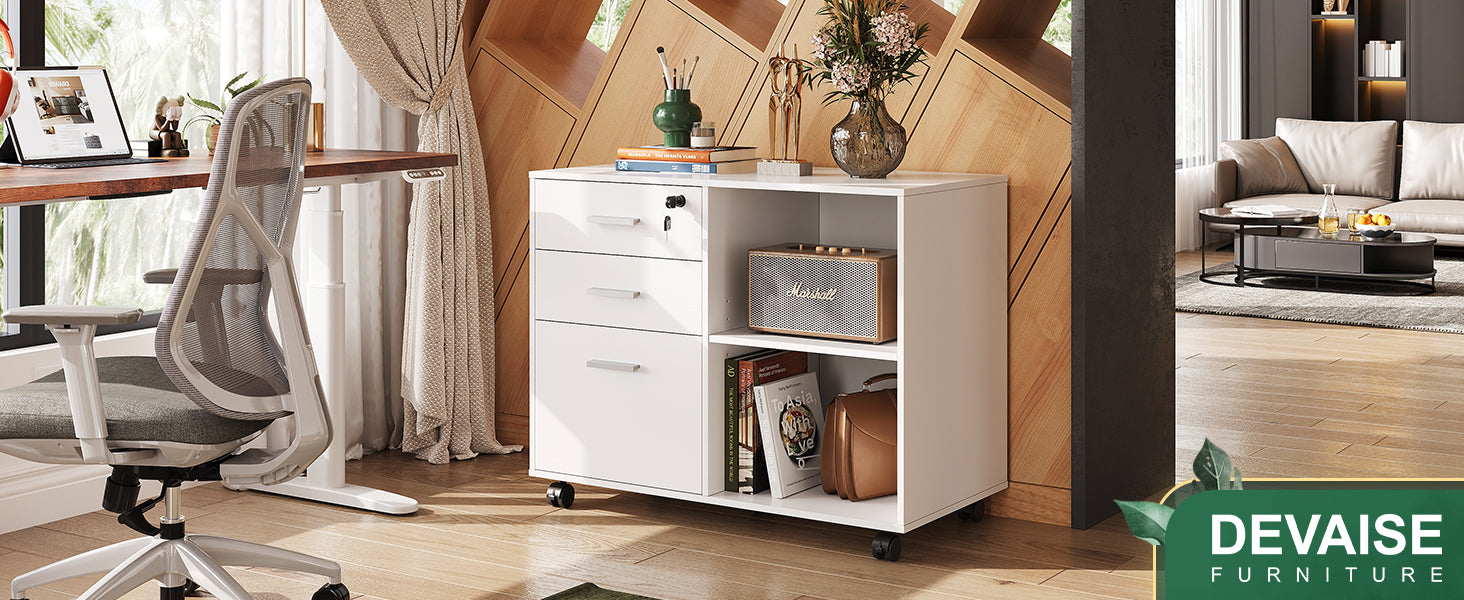 DEVAISE 3-Drawer Wood Lateral File Cabinet with Lock