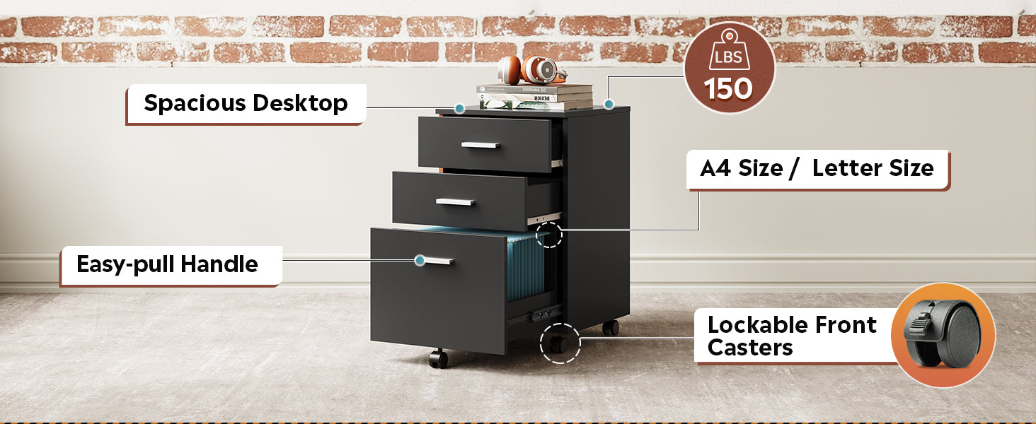 Rolling Filing Cabinet for Letter/A4 Size, Good for Home Office