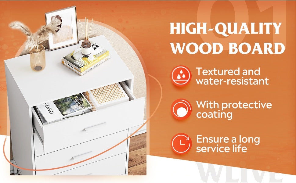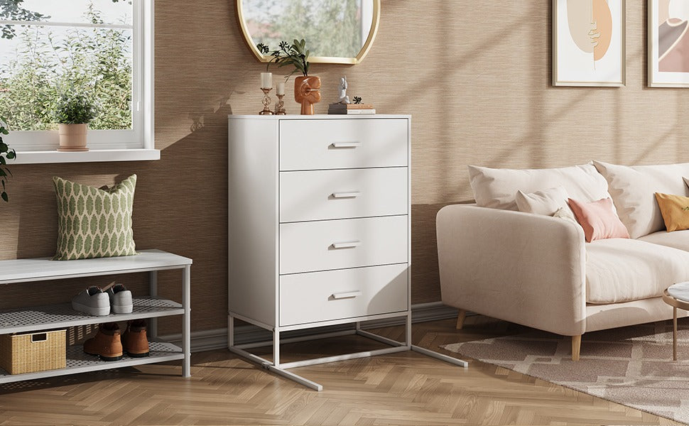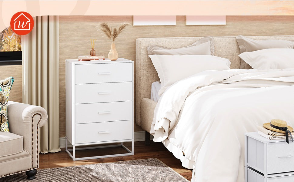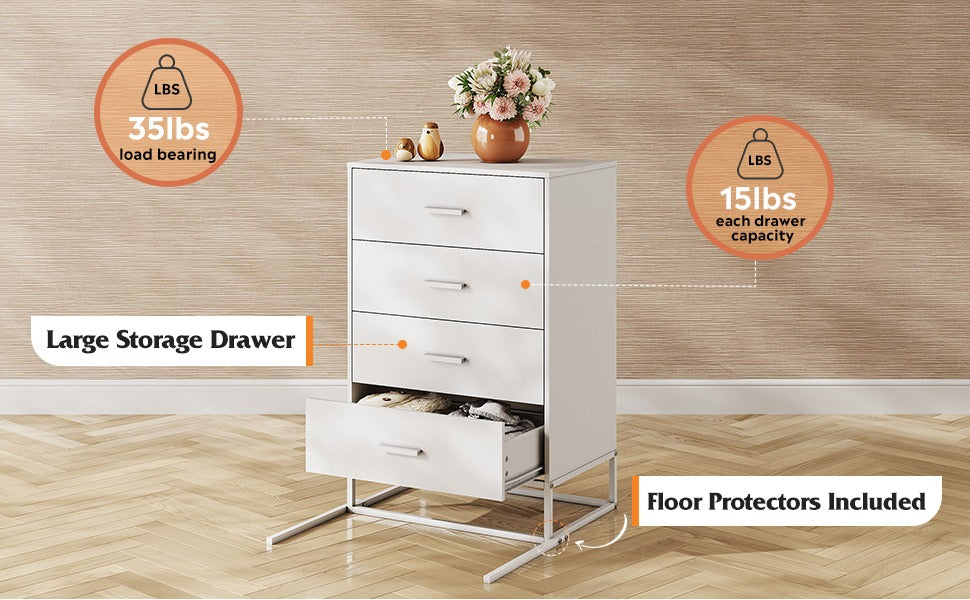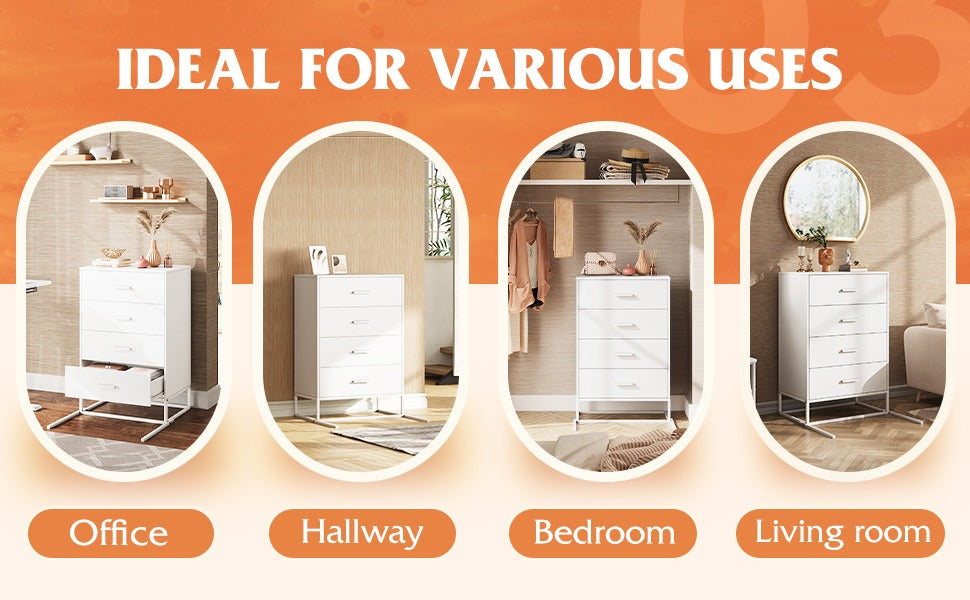4 spacious drawers, sturdy steel frame, water-resistant panel, and smooth slide rails.