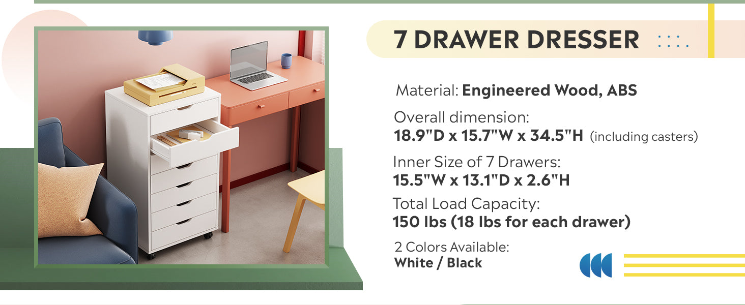 DEVAISE 7-Drawer Modern Wood Storage Dresser & File Cabinet