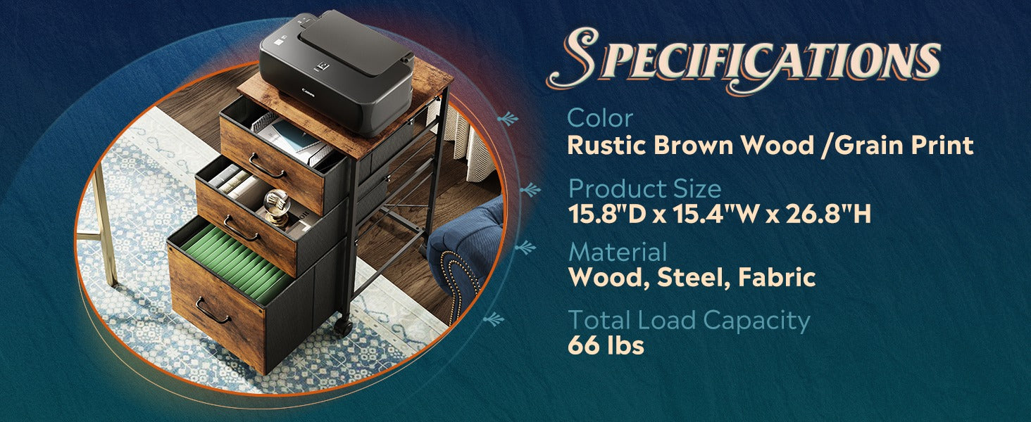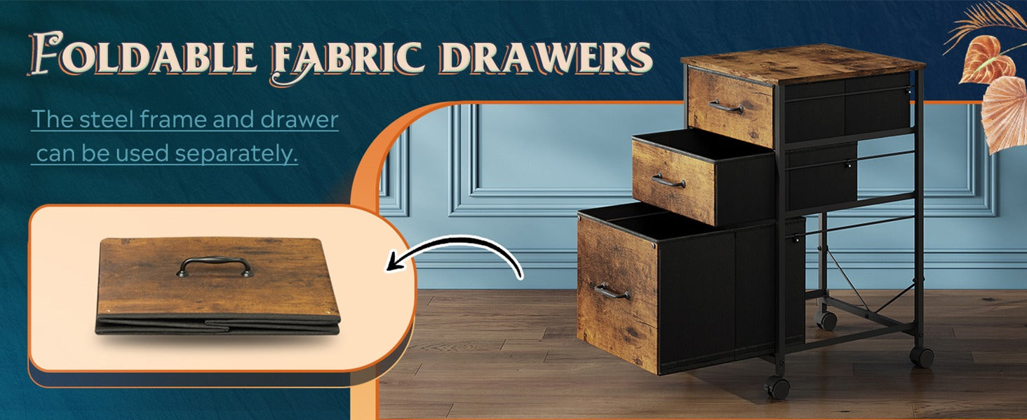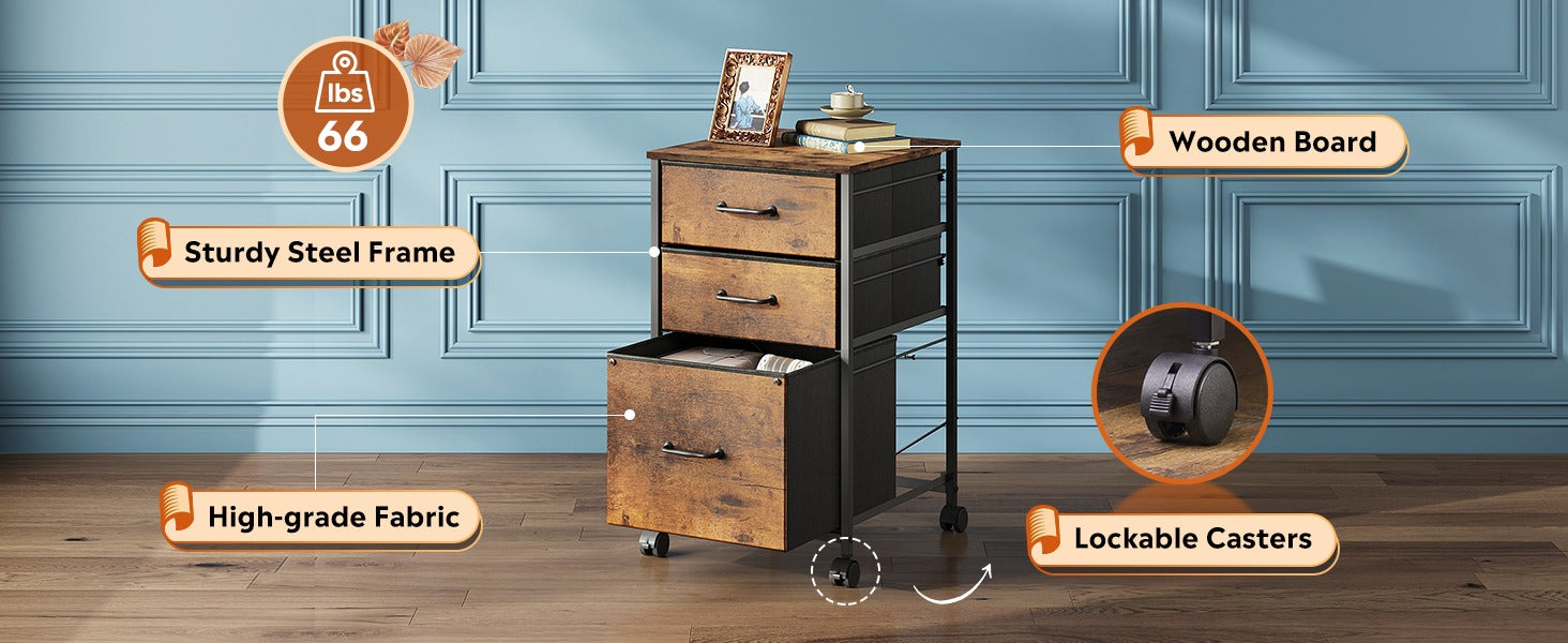 DEVAISE Vertical 3-Drawer Fabric Mobile File Cabinet