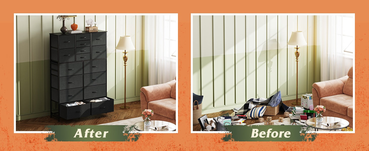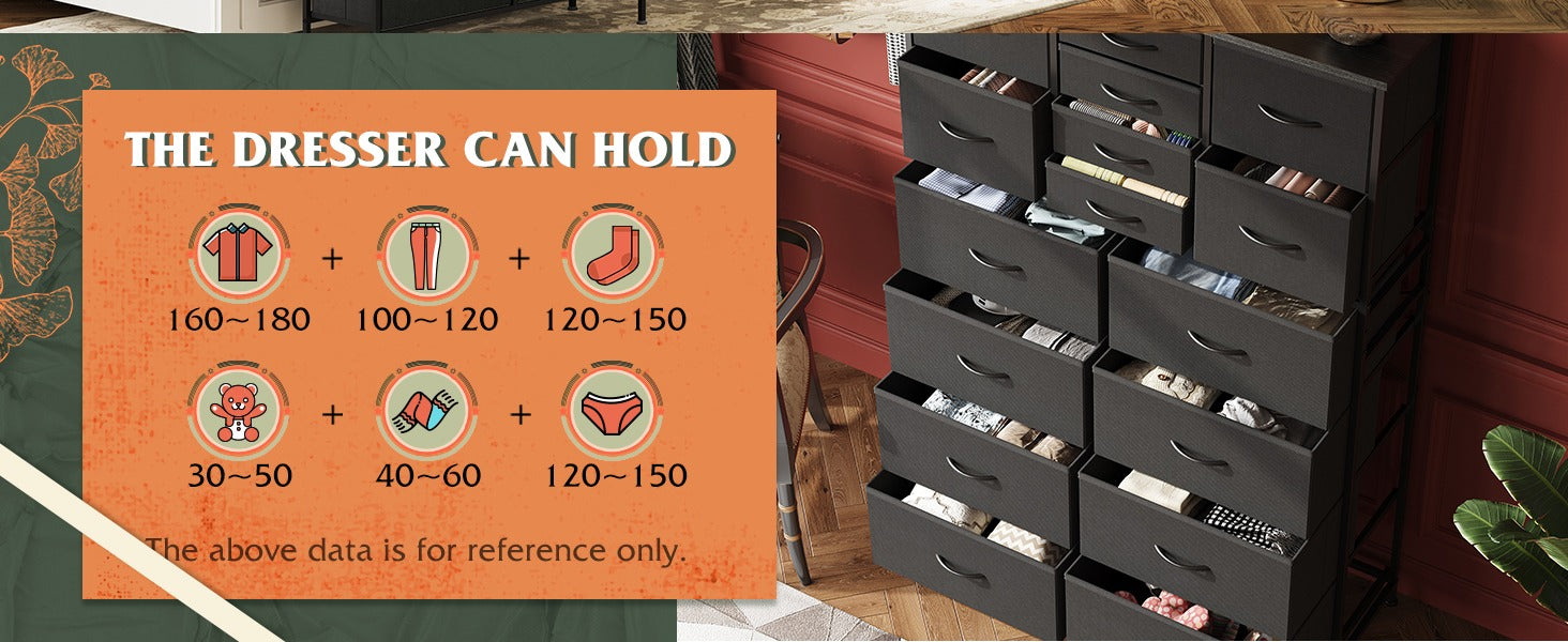 WLIVE Extra Large Storage Tall 16-Drawer Fabric Dresser