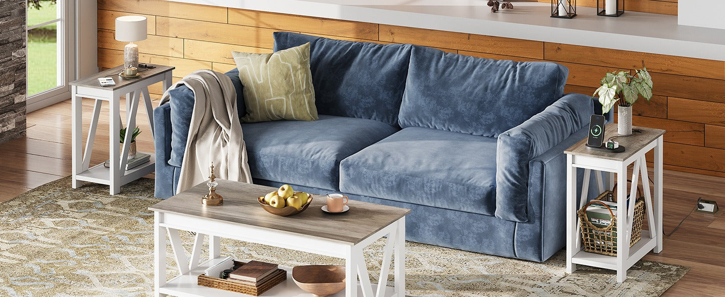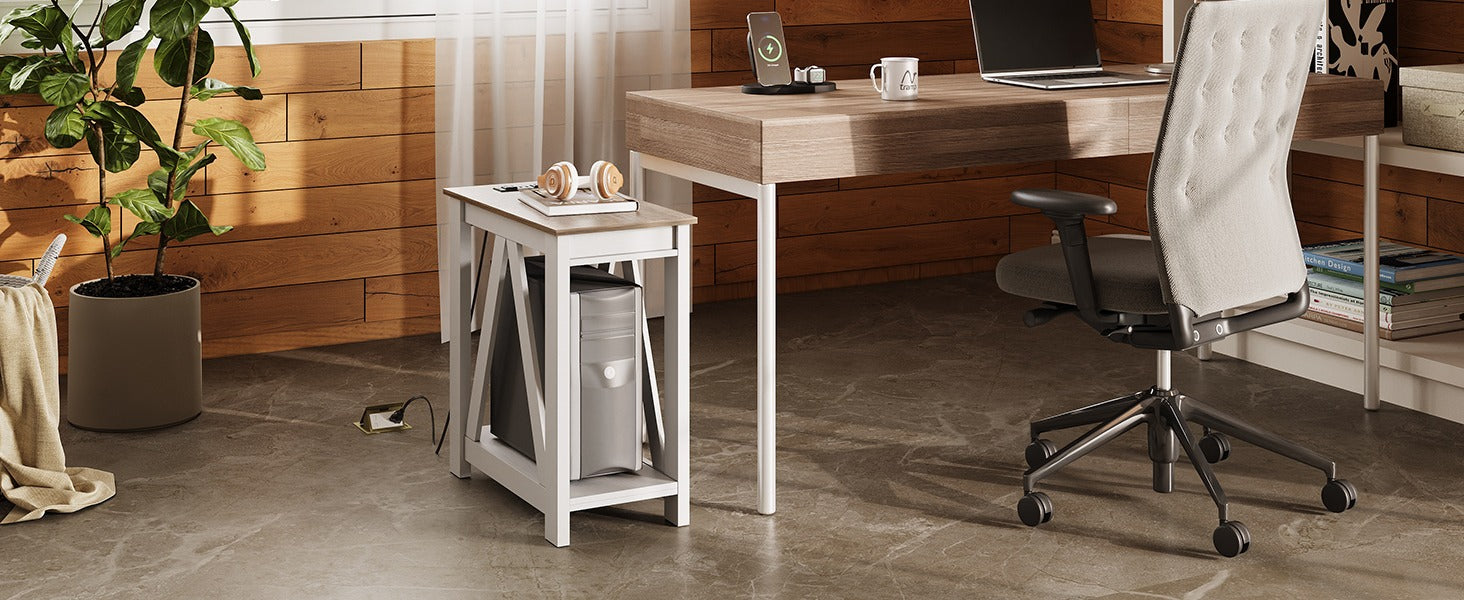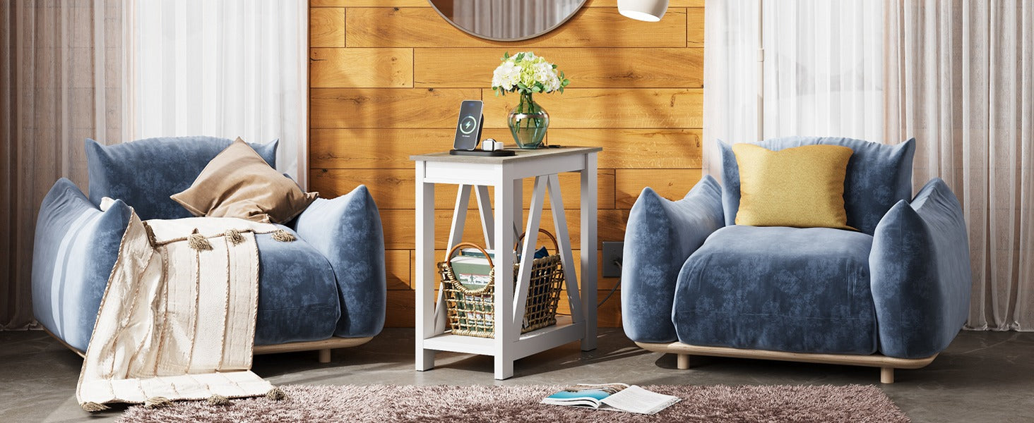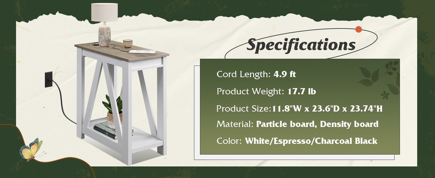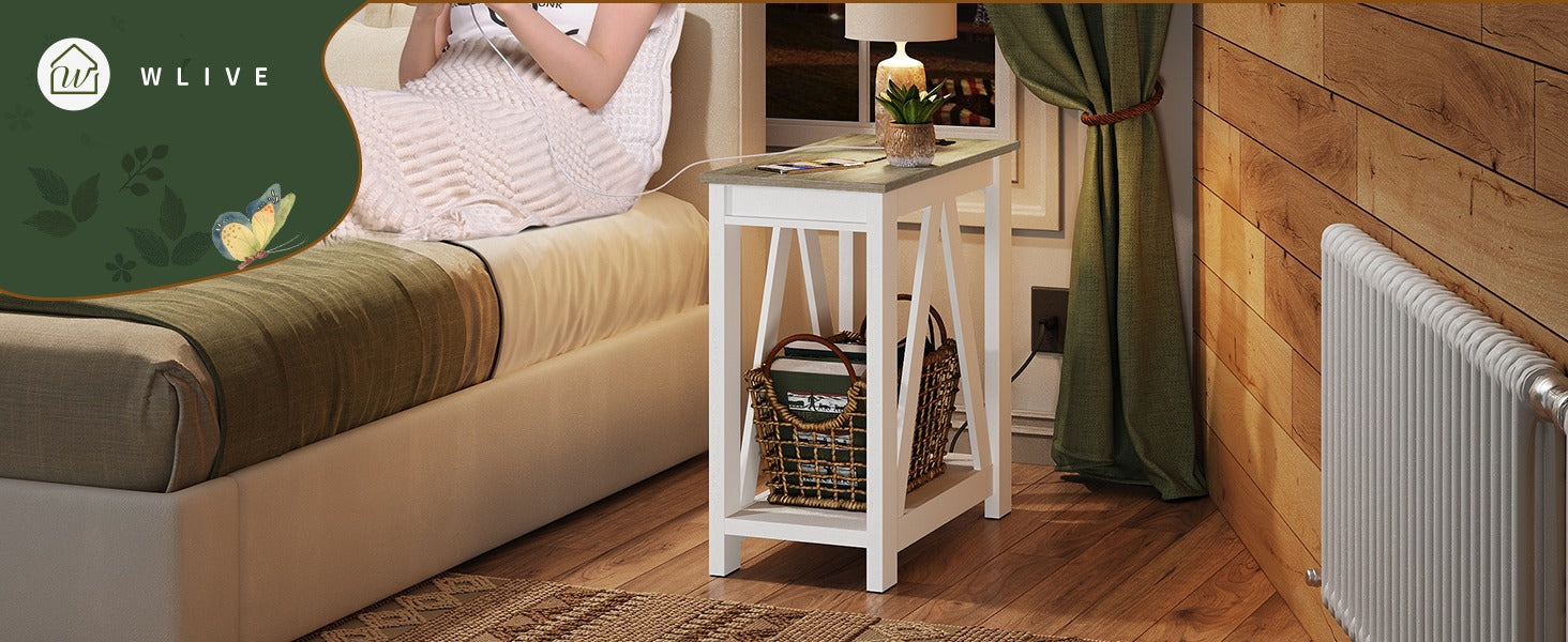 WLIVE Farmhouse Narrow 2-Tier Side Table with Charging Station