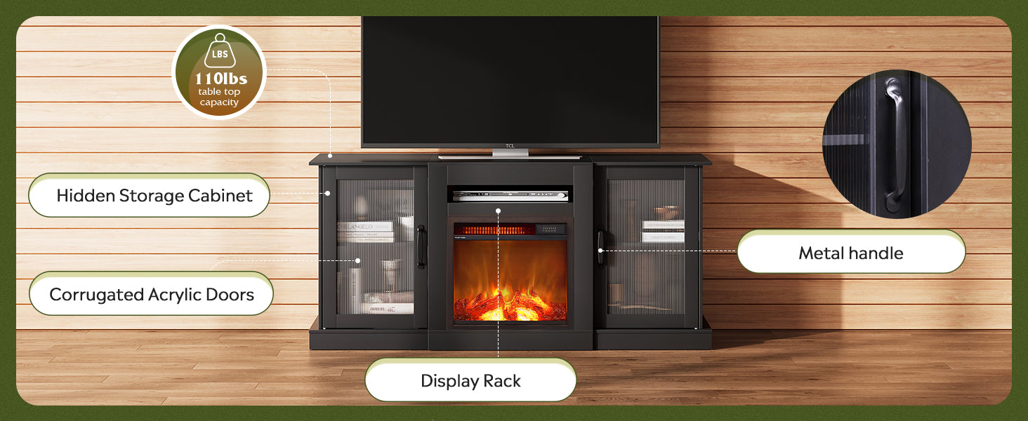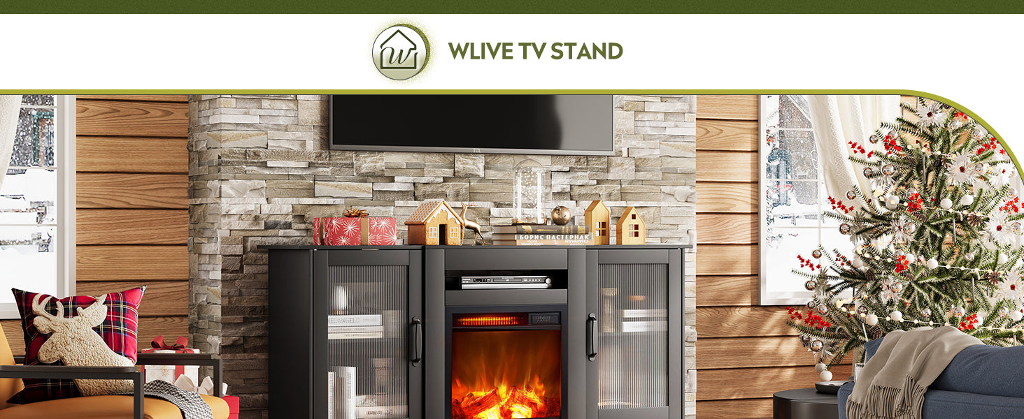 WLIVE Farmhouse TV Console with 18 Inch Electric Fireplace