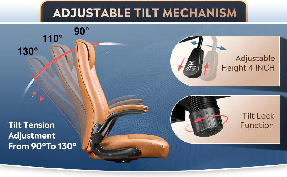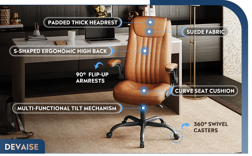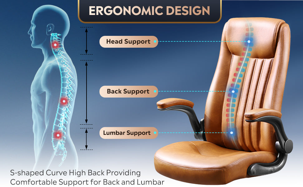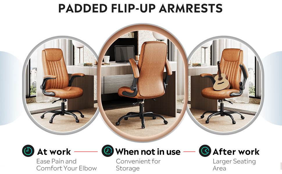 Adjustable Flip-up Armrests, Lumbar Support and Thick Headrest, Executive Swivel Task Chair