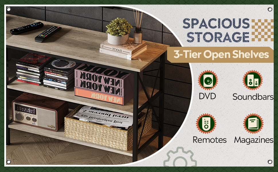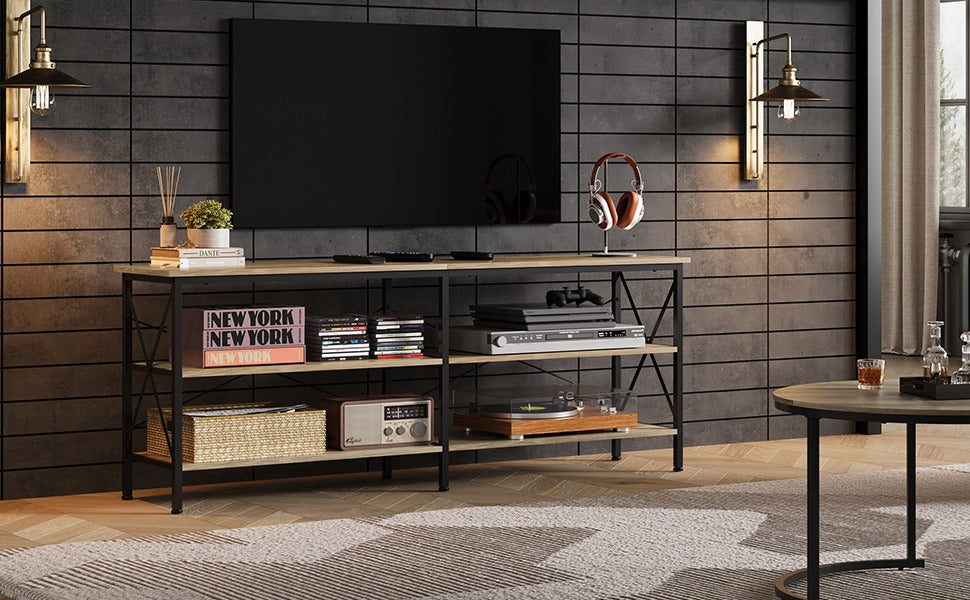WLIVE Industrial 3-Tier Shelves TV Stand for TVs up to 70''