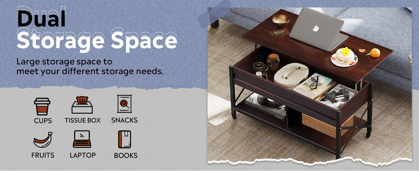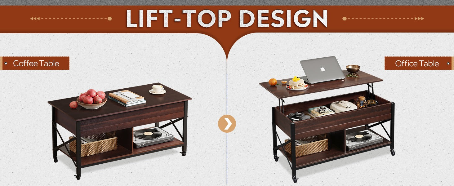 WLIVE Mid-Century Modern Lift Top Coffee Table with 4 Wheels