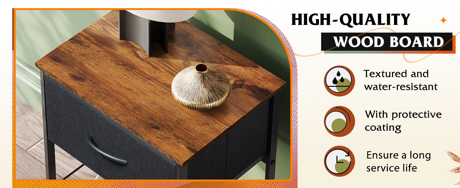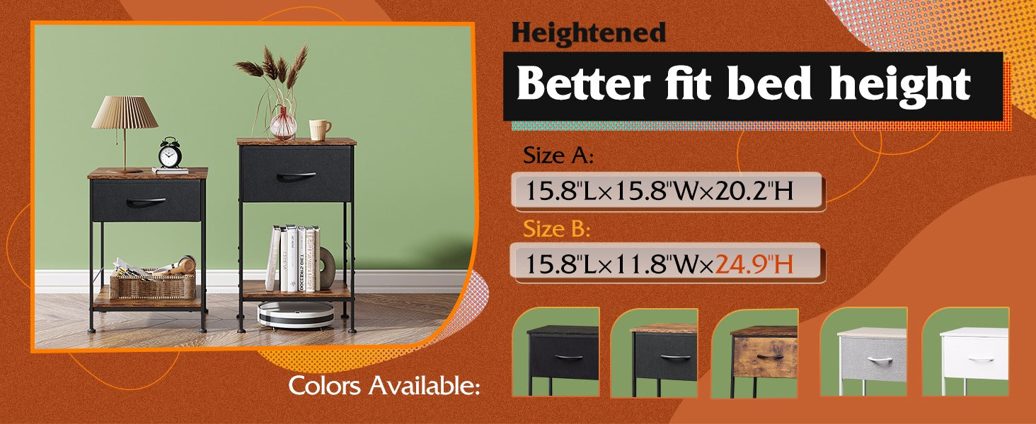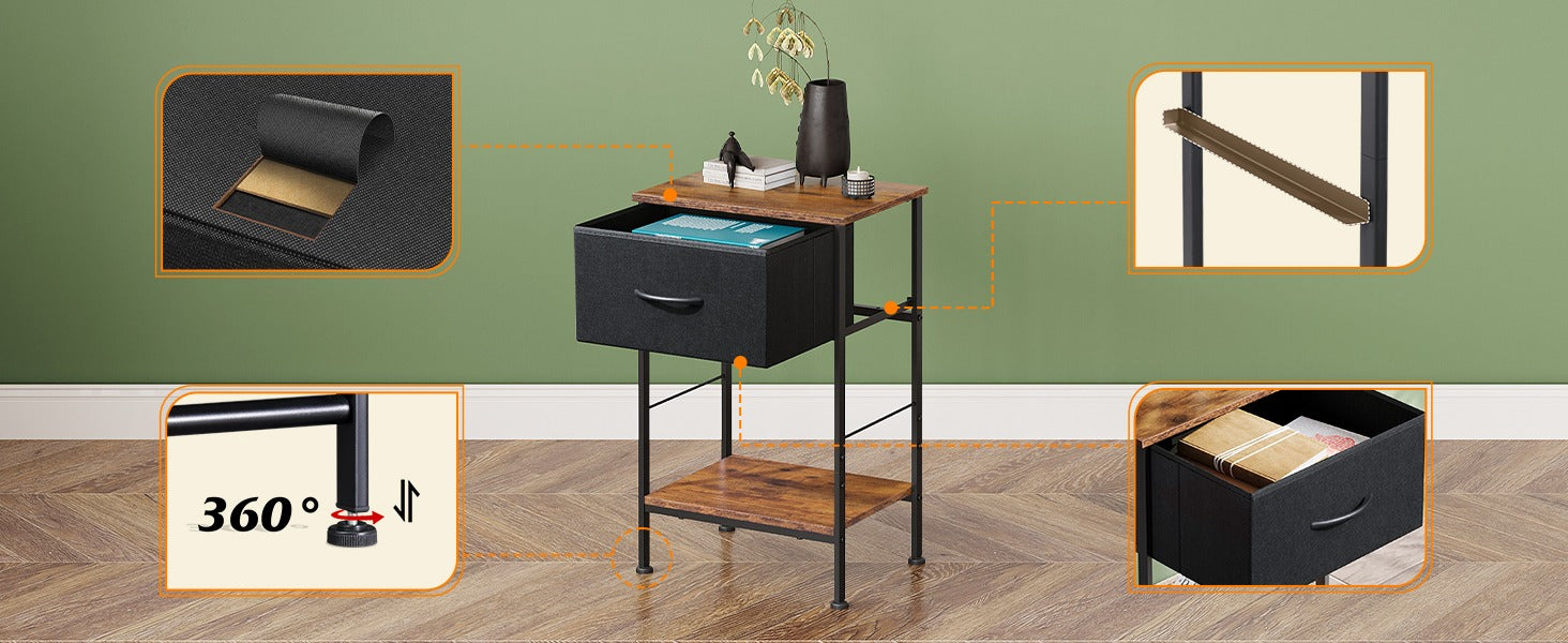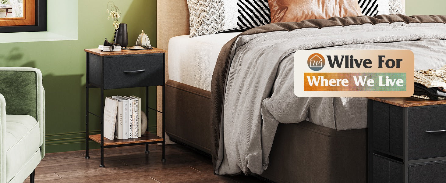 WLIVE Minimalist 1-Drawer Fabric Storage Nightstand (Set of 2)