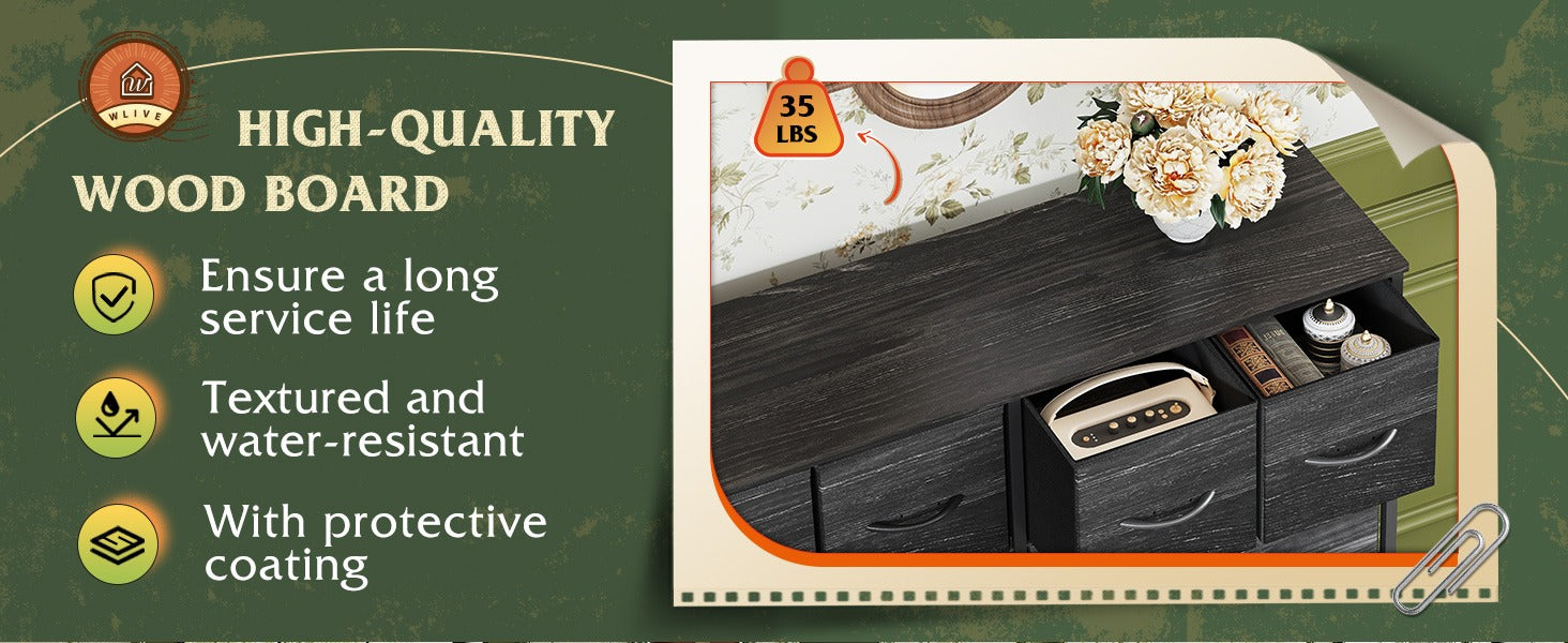 WLIVE Minimalist 10-Drawer Large Storage Fabric Dresser
