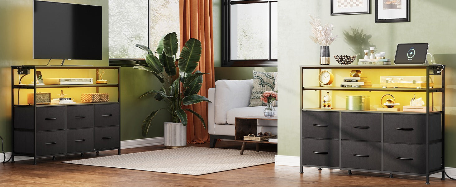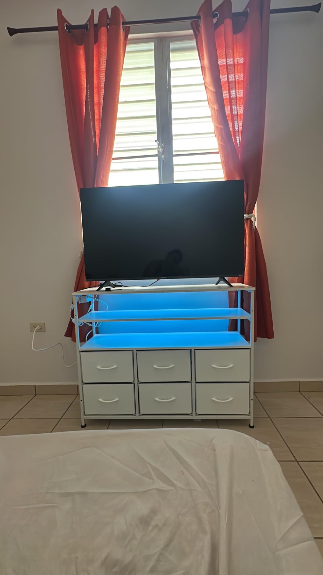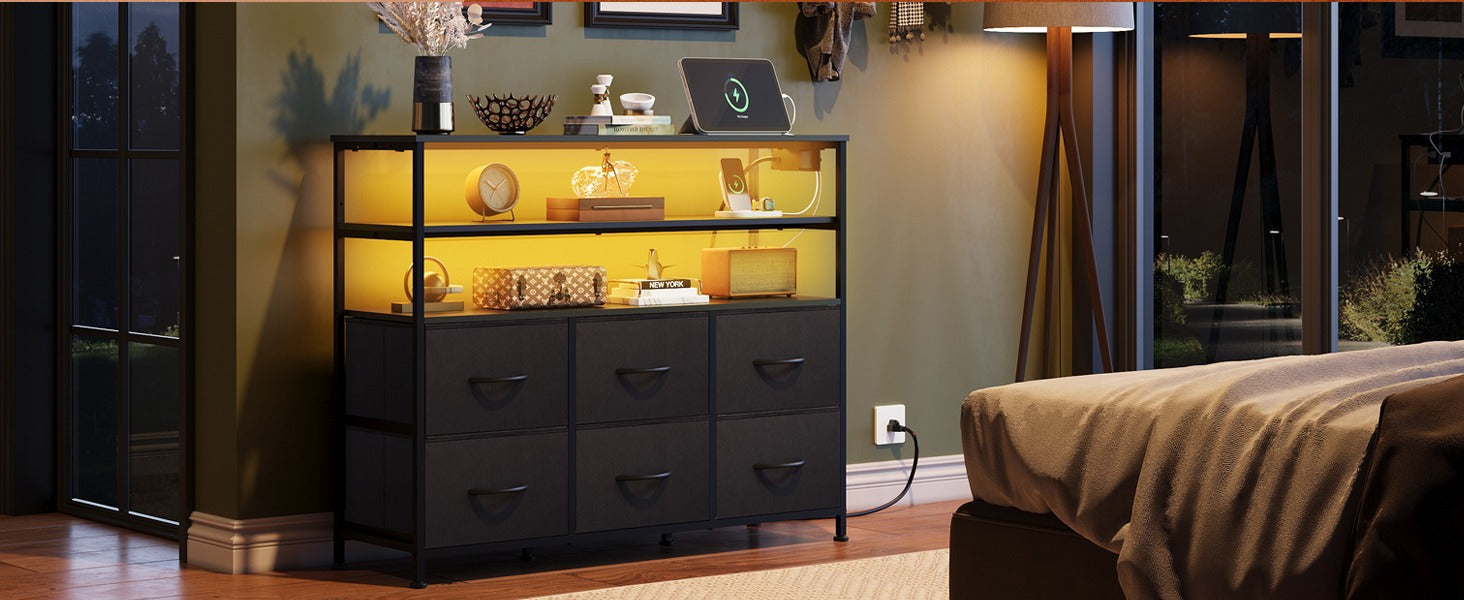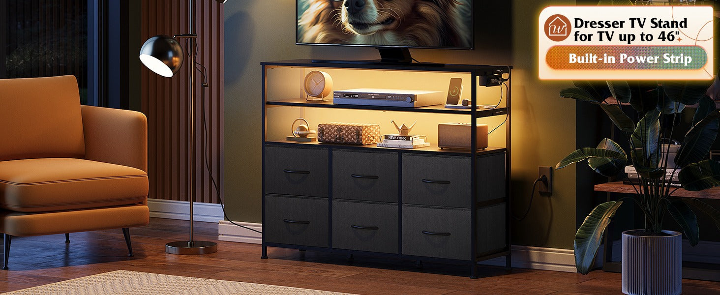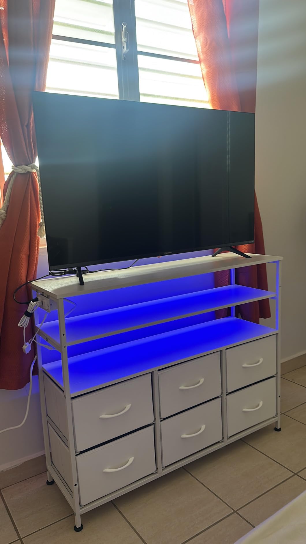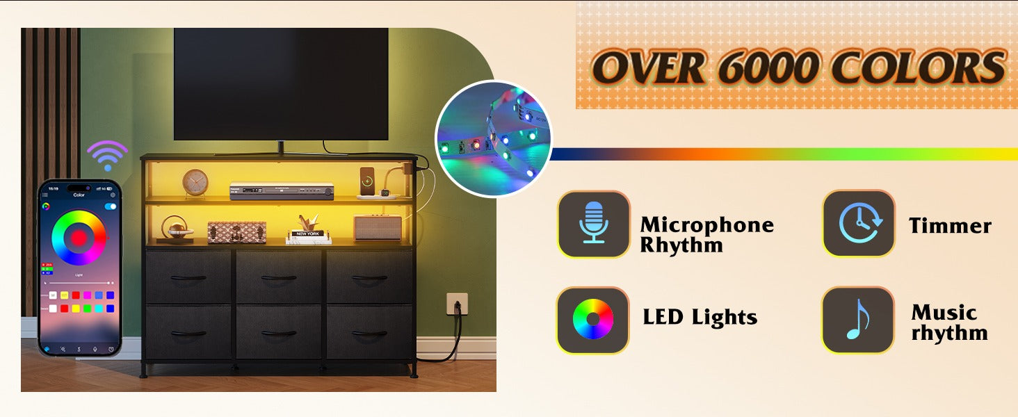 WLIVE Minimalist 6-Drawer LED Large Storage Fabric Dresser TV Stand