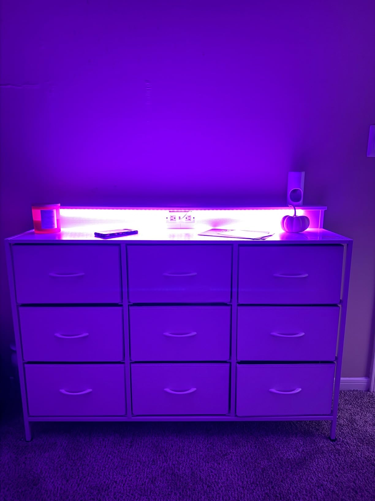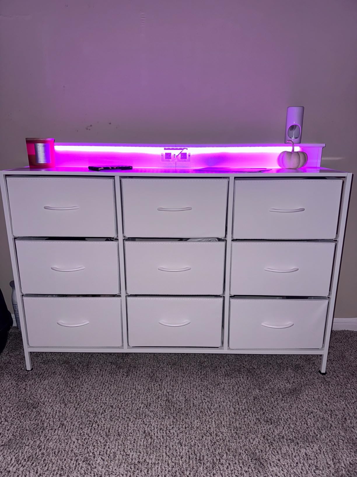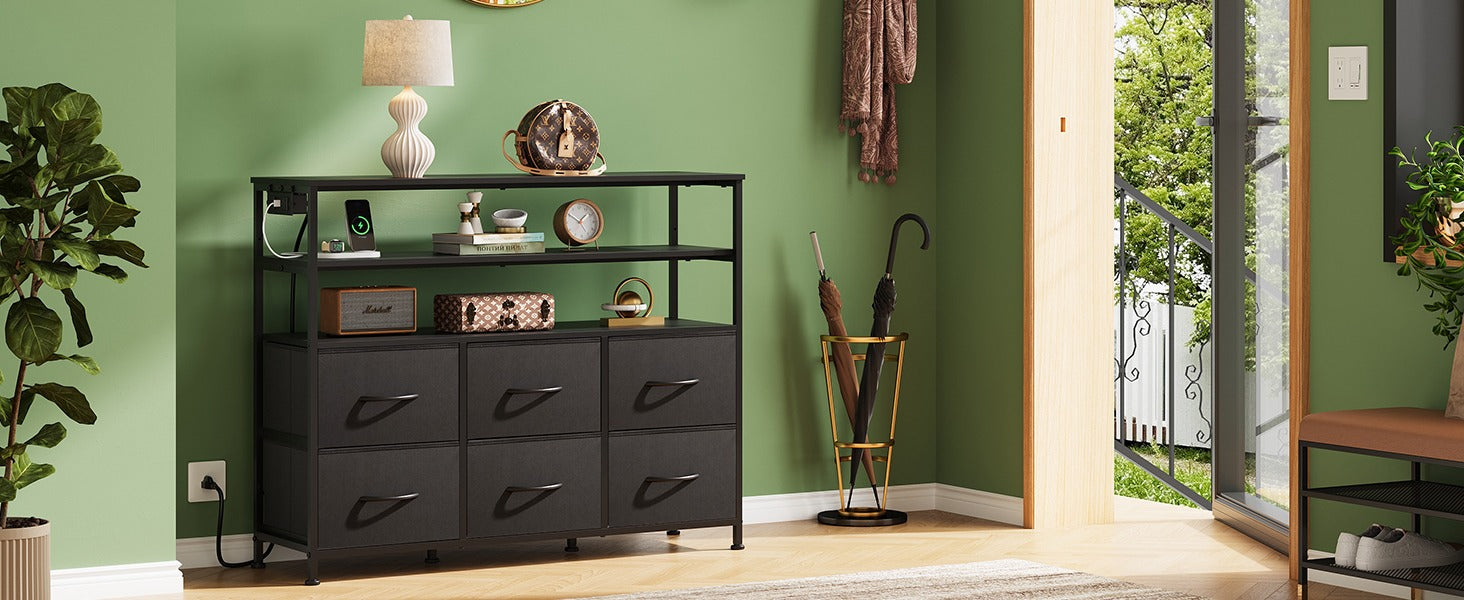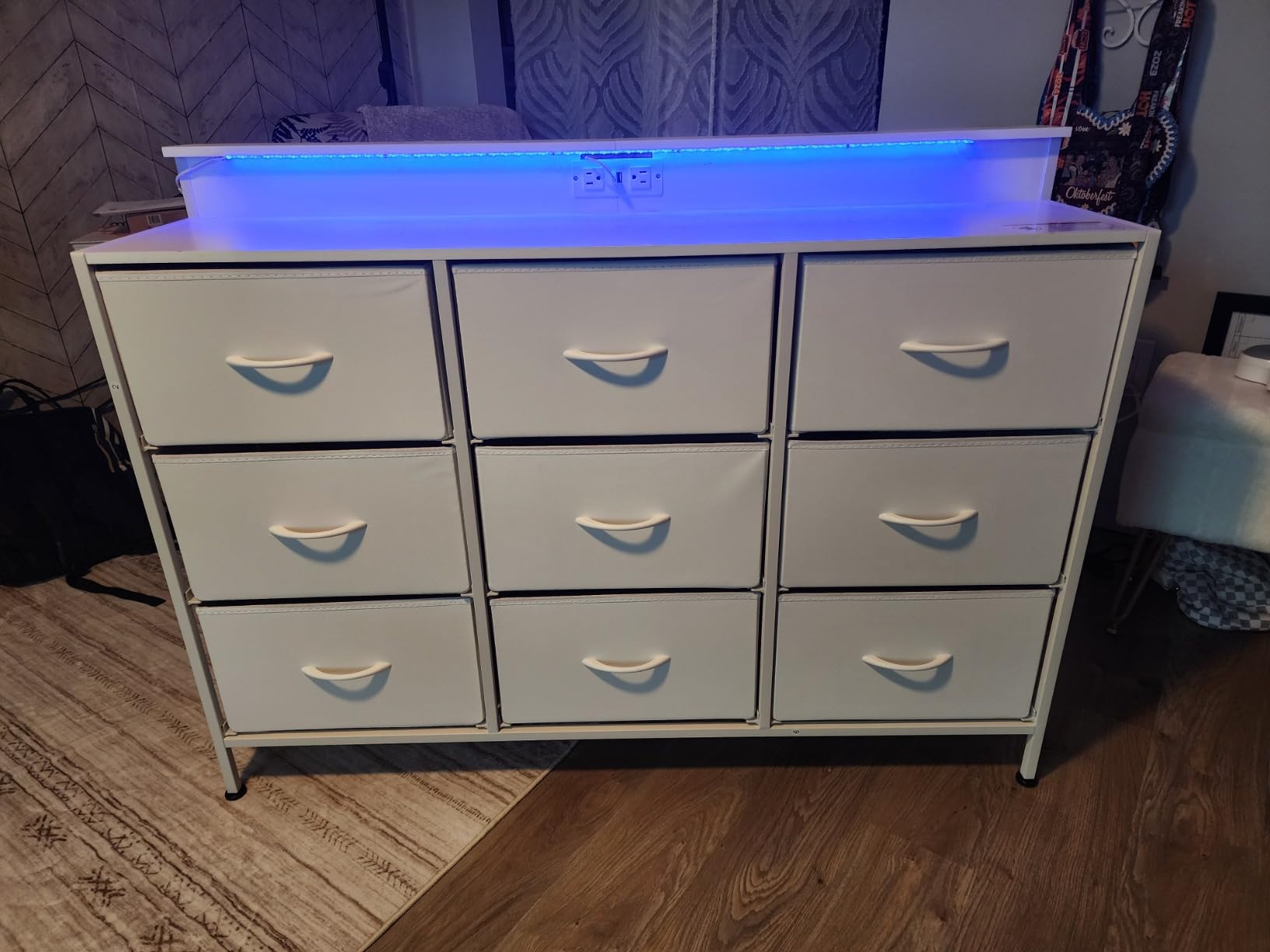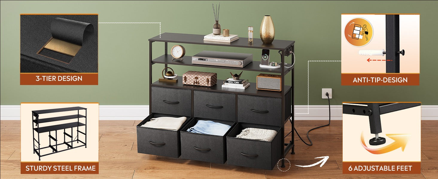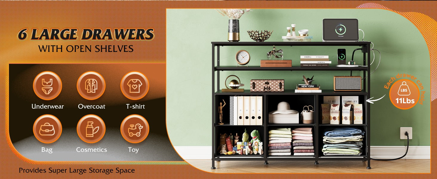 WLIVE Minimalist 6-Drawer LED Large Storage Fabric Dresser TV Stand