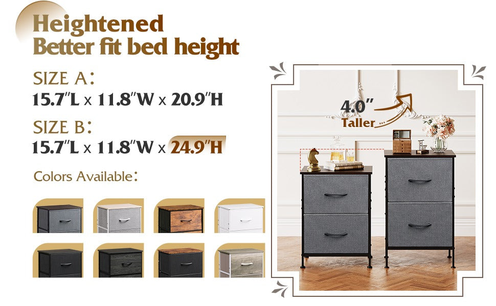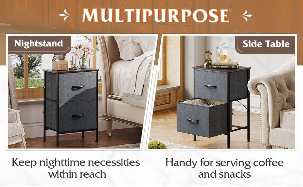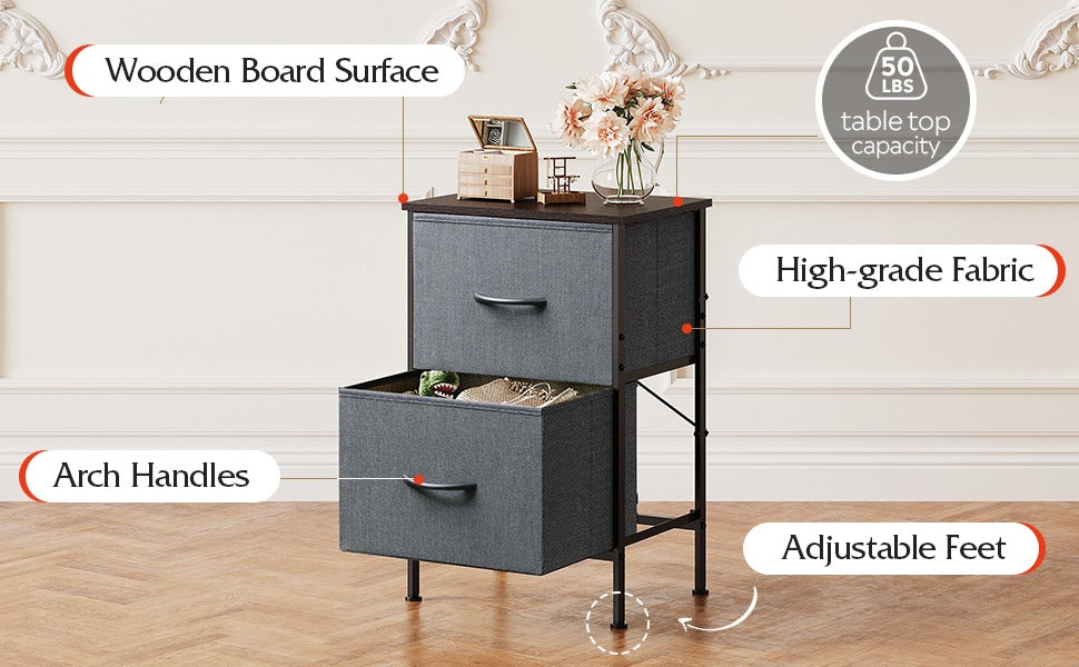 WLIVE Minimalist Small Fabric 2-Drawer Nightstands (Set of 2)
