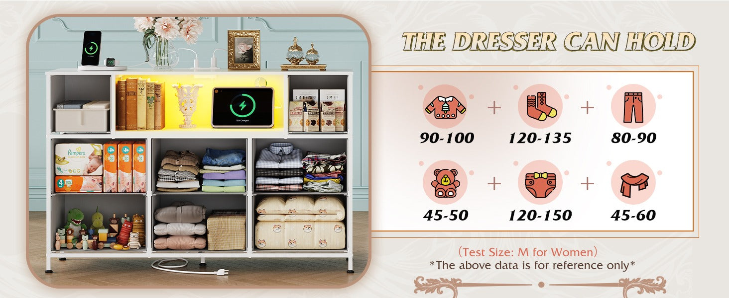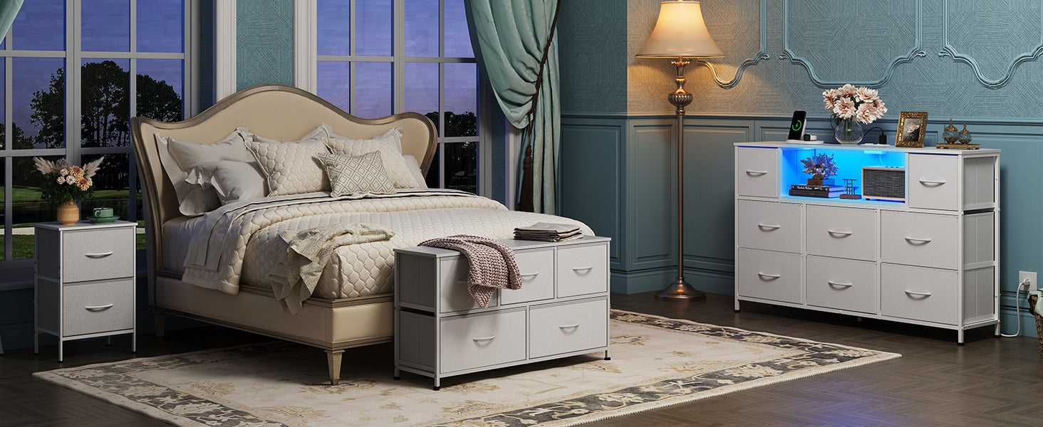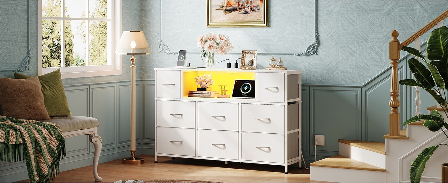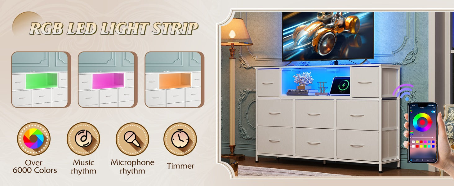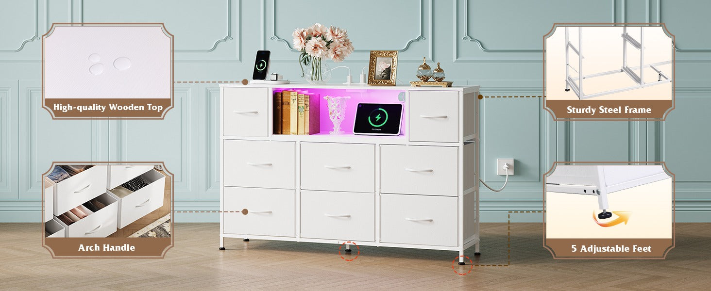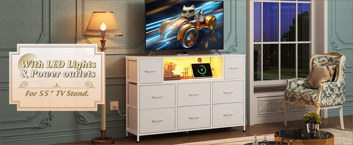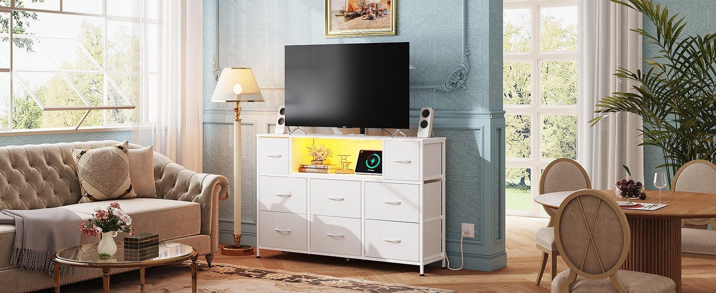 WLIVE Minimalist White 8-Drawer Display Fabric Dresser TV Stand