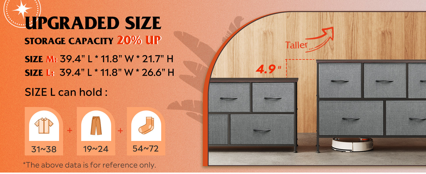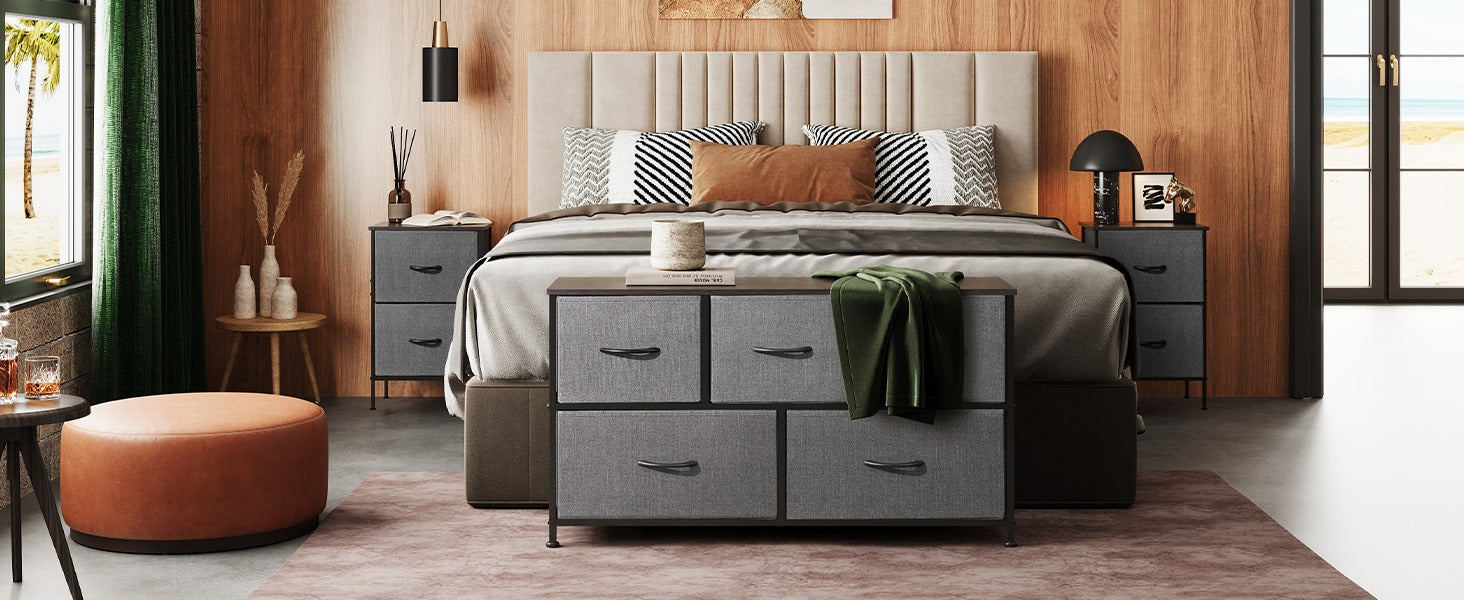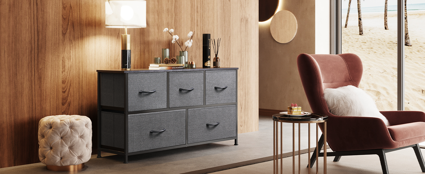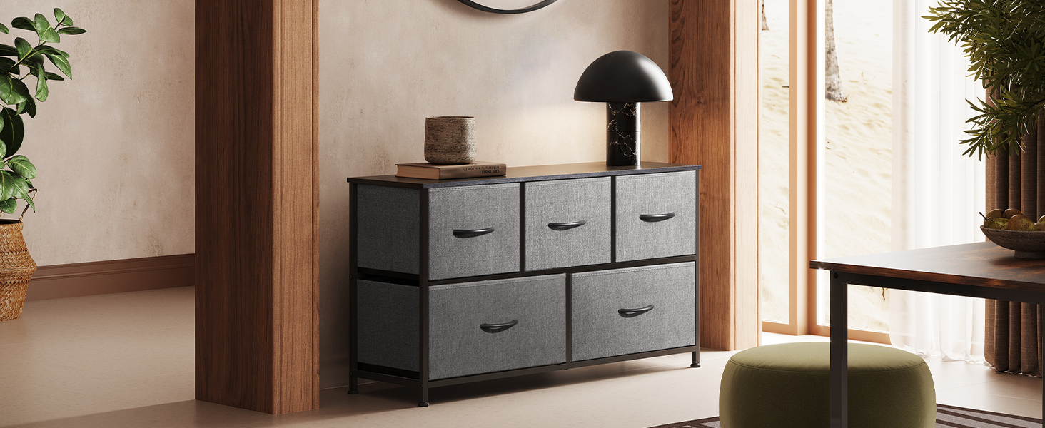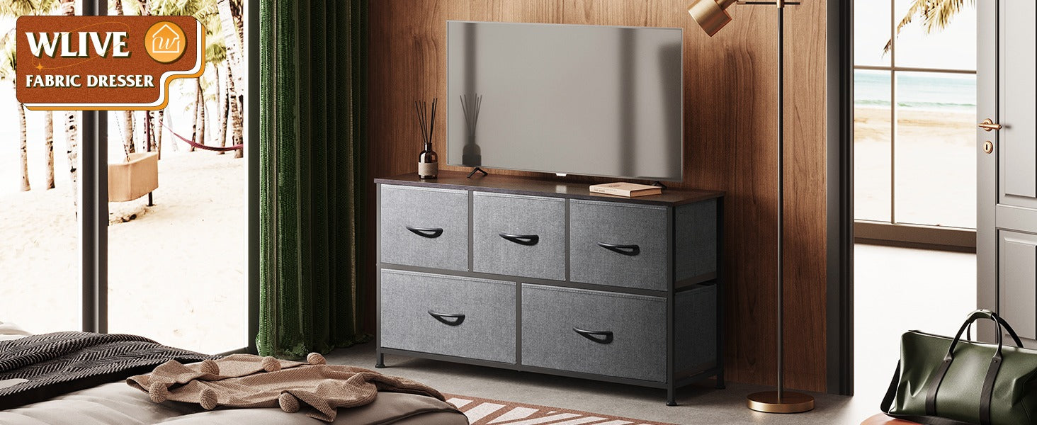 WLIVE Minimalist Wide Fabric 5-Drawer Dresser