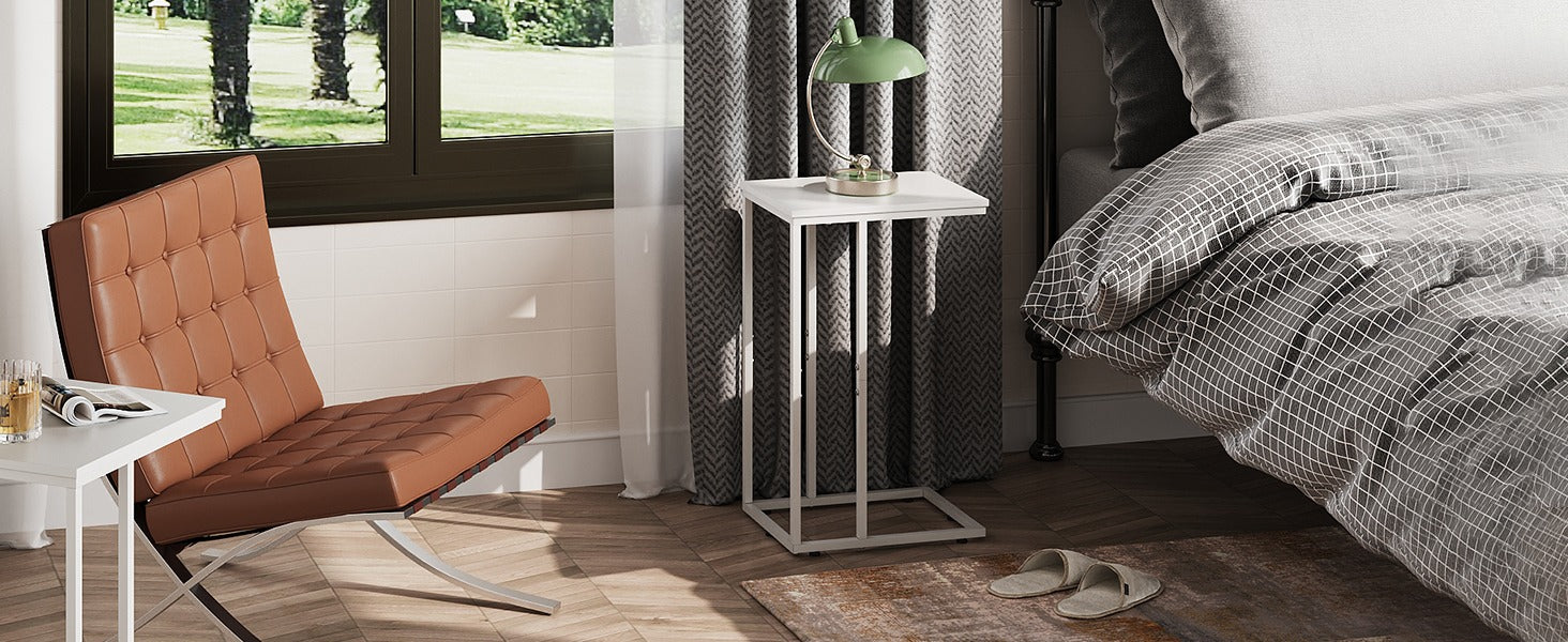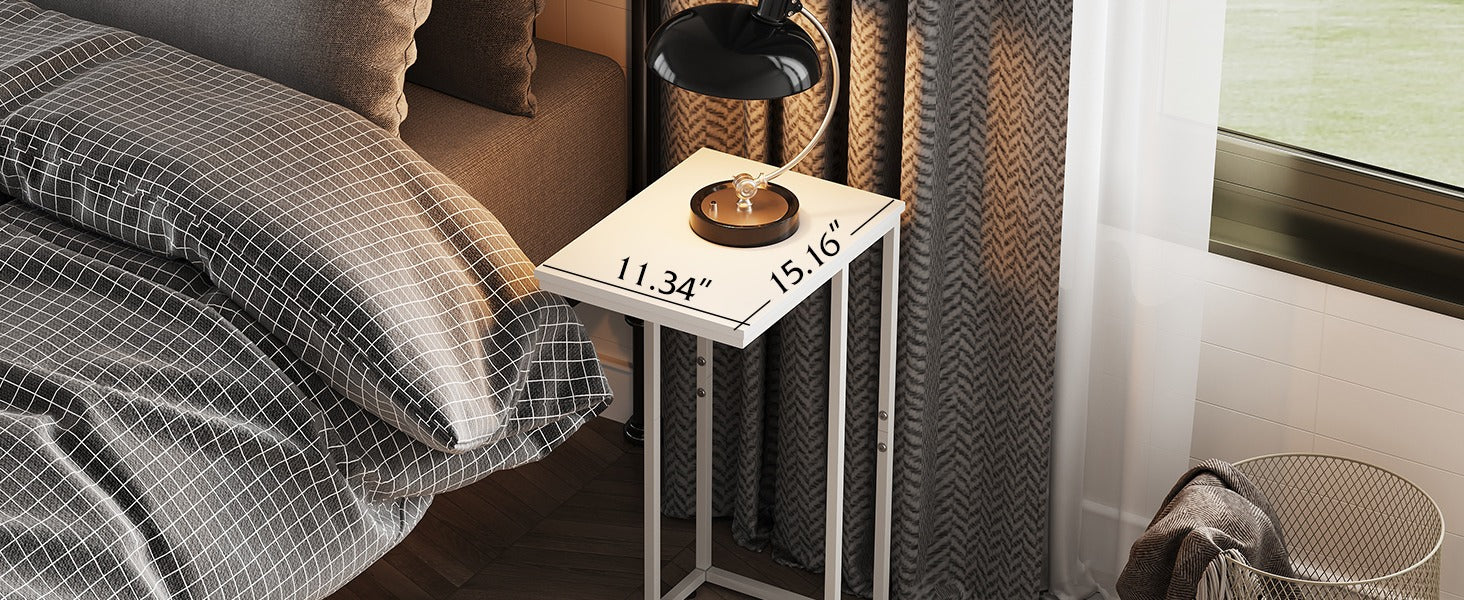C shaped end table for couch with steel frame, large tabletop