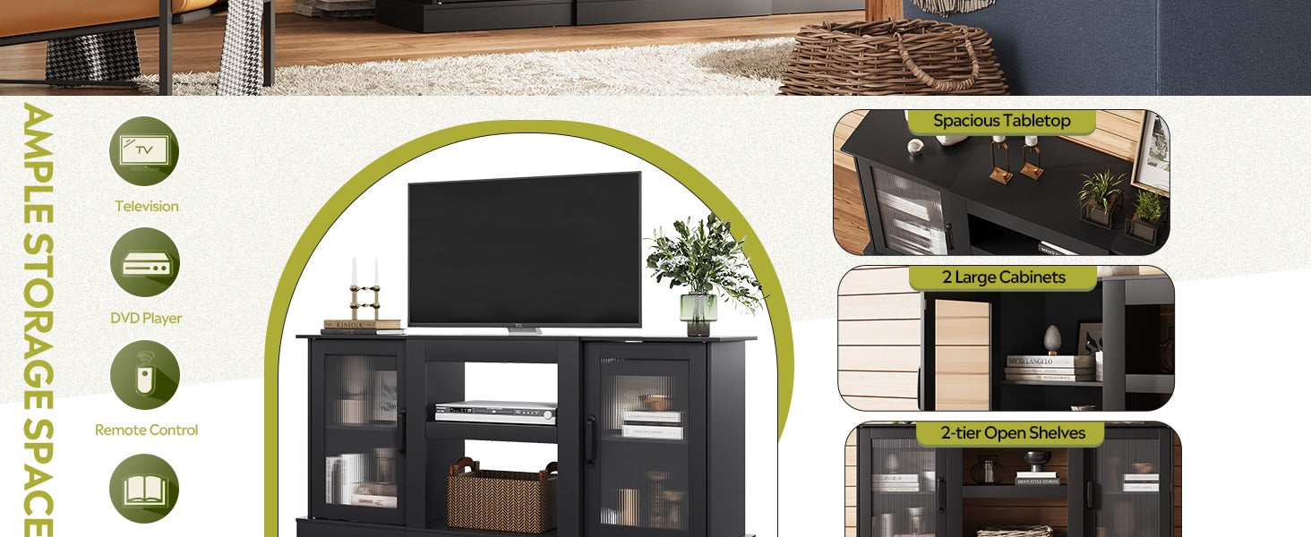 WLIVE Modern Minimalist Storage TV Stand Cabinet for 65 inch TV