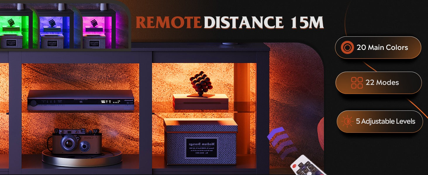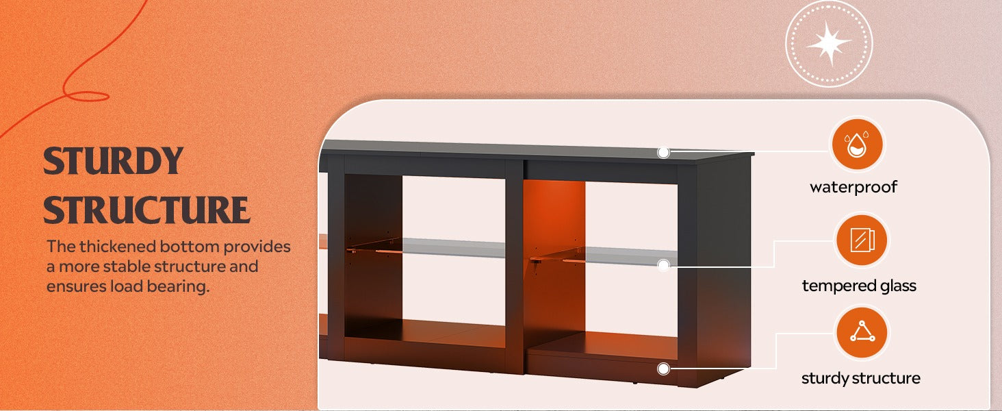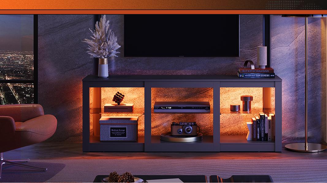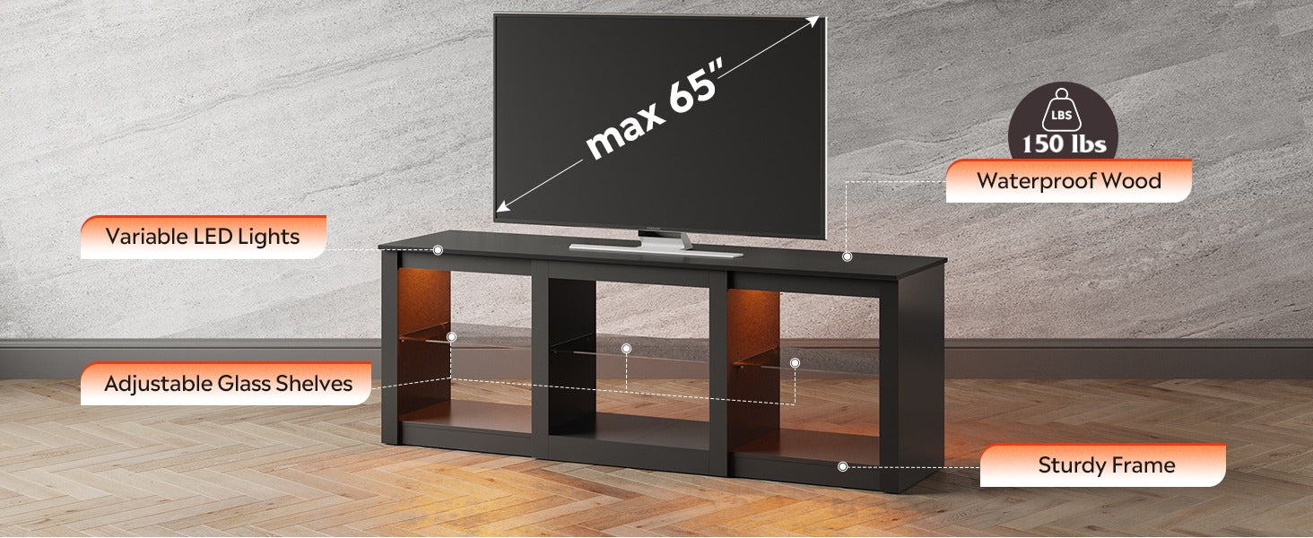 WLIVE Modern Storage LED TV Stand with Glass Shelves for 65 Inch TV