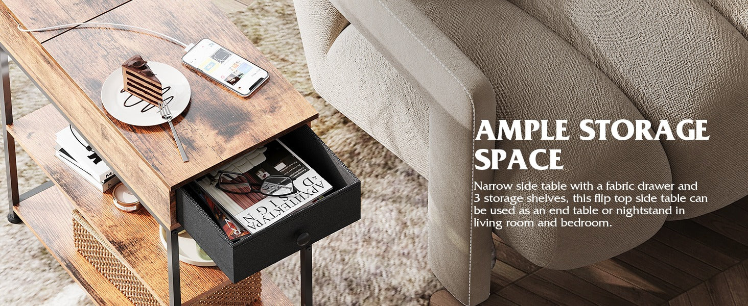 Flip top end table with drawer and storage shelves for Living Room