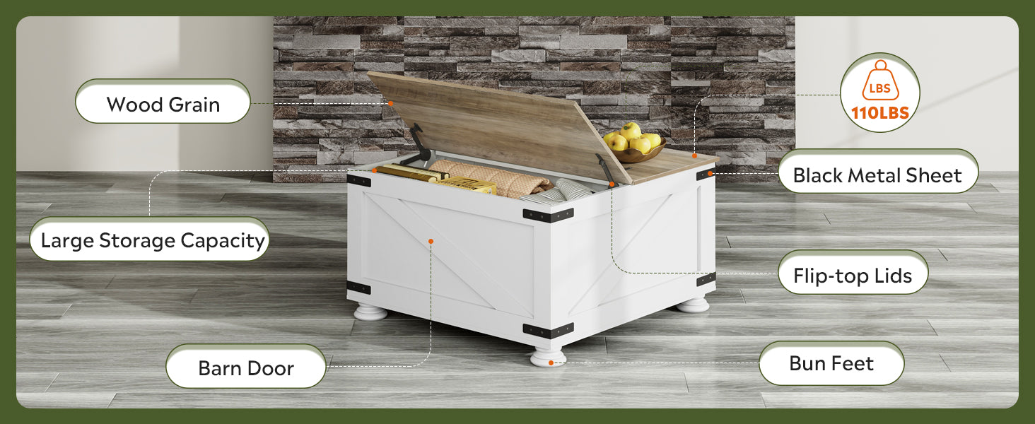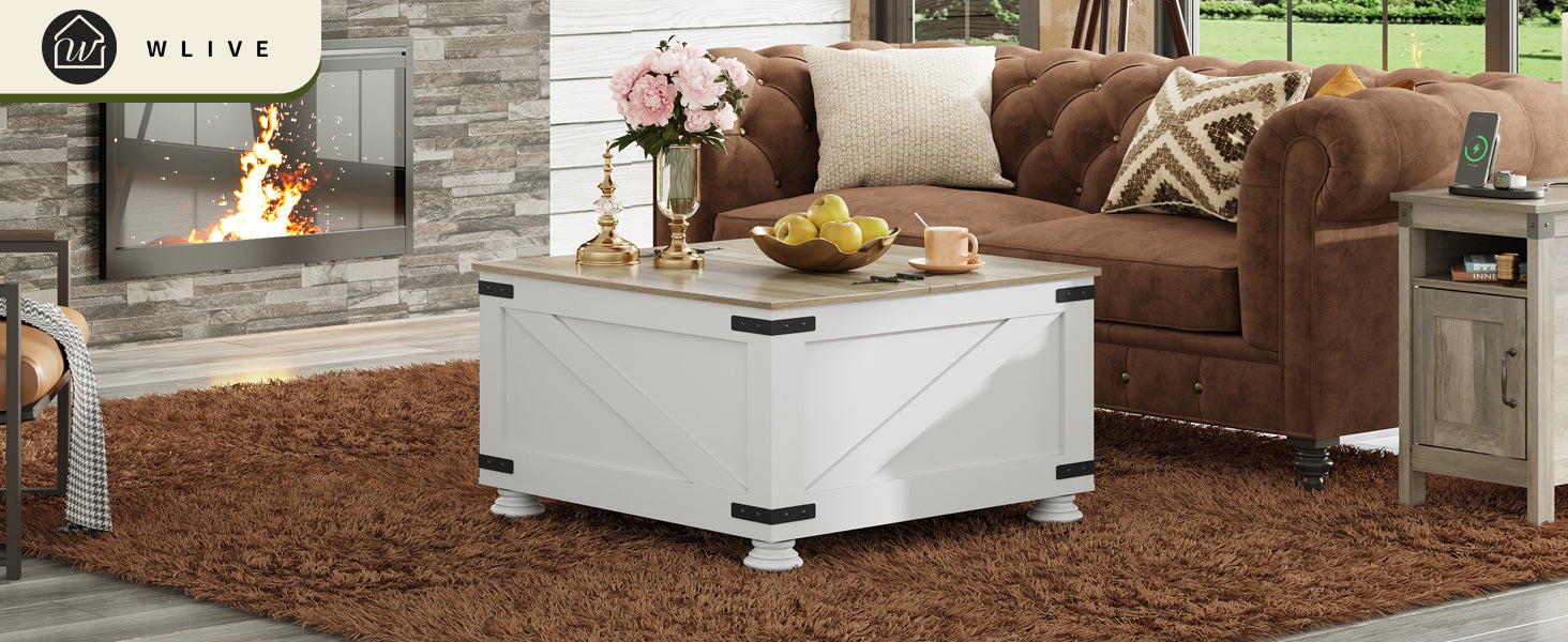 WLIVE Square Wood Farmhouse Coffee Table with Flip Top