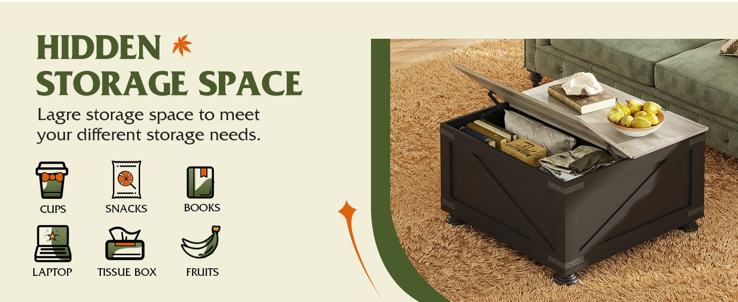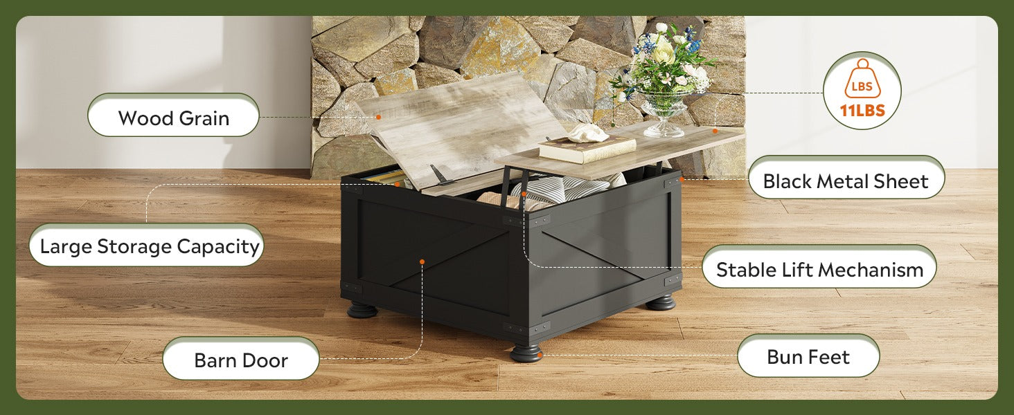WLIVE Square Wood Farmhouse Lift Top Coffee Table with Storage