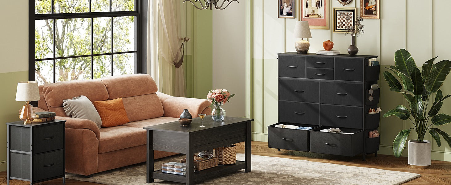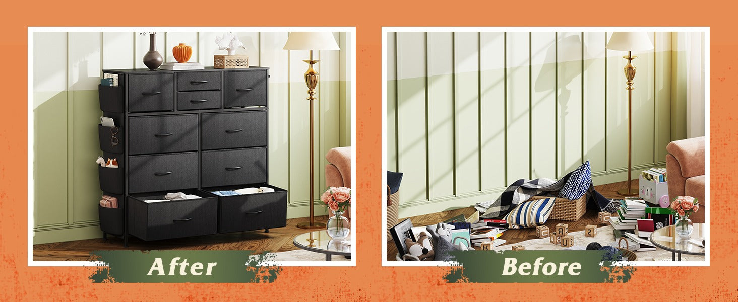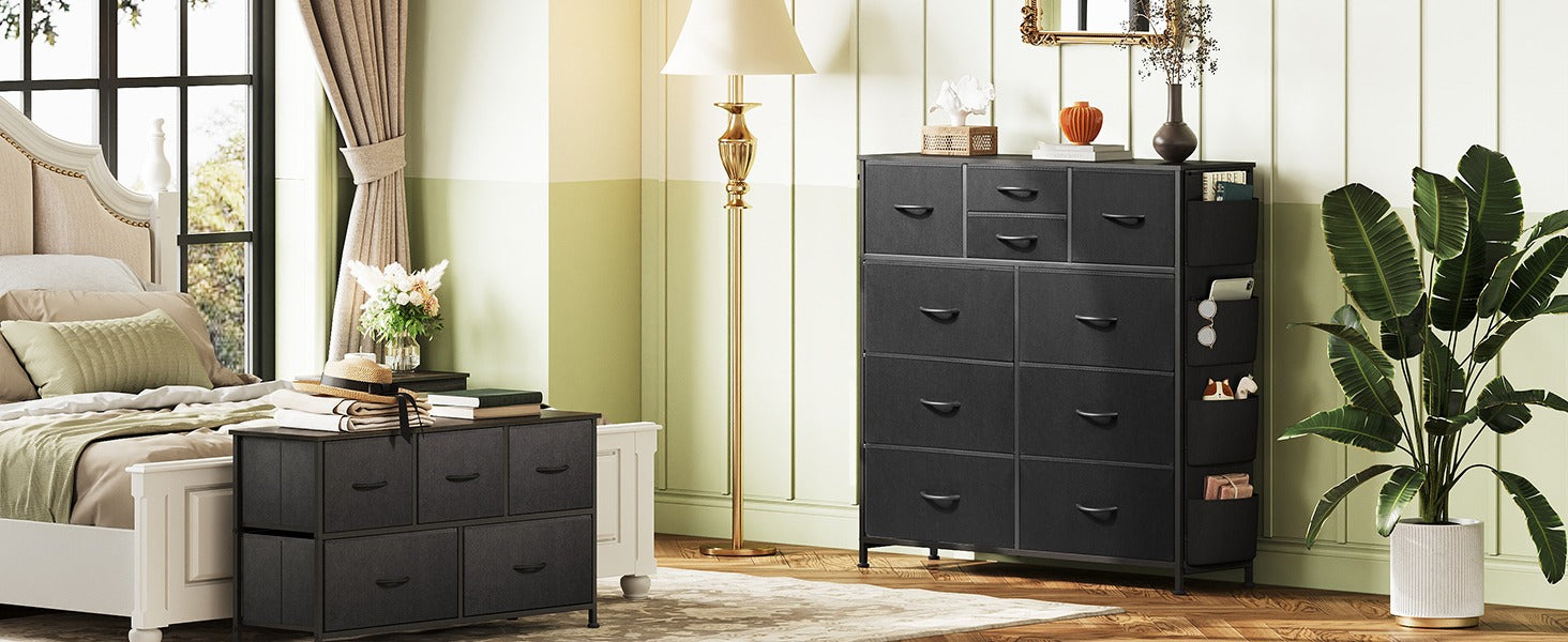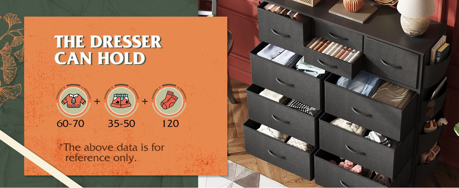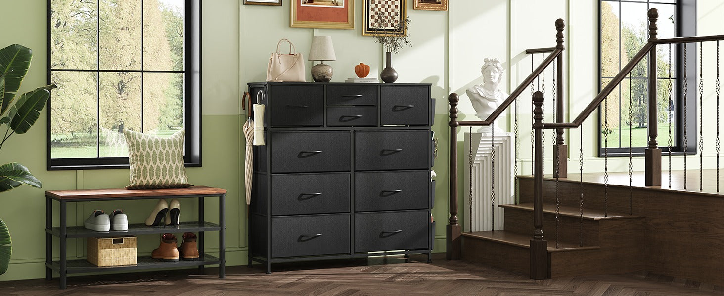 WLIVE 10-Drawer Fabric Dresser with Side Pockets and Hooks