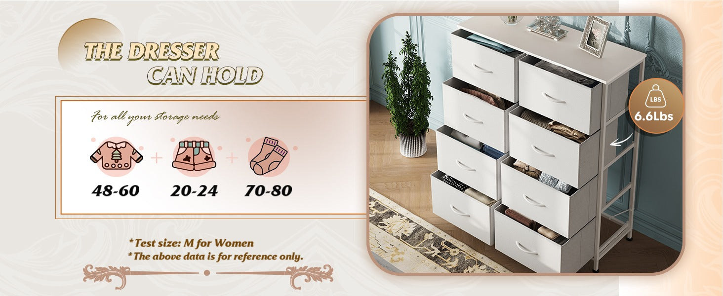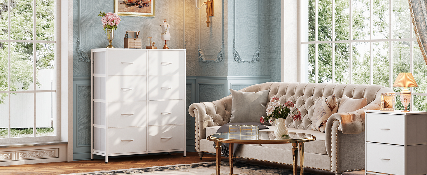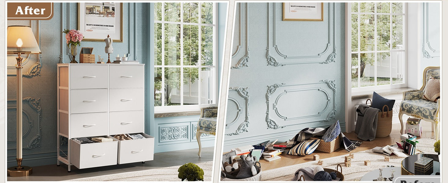 WLIVE Minimalist Tall 8-Drawer Storage Fabric Dresser