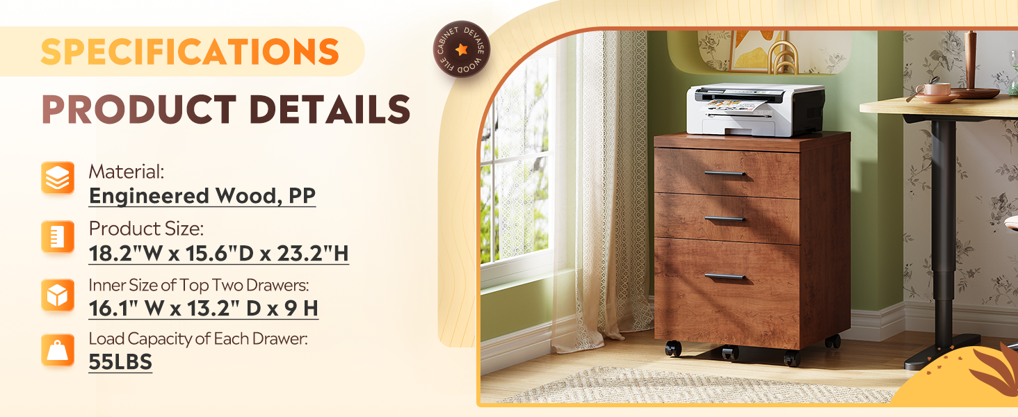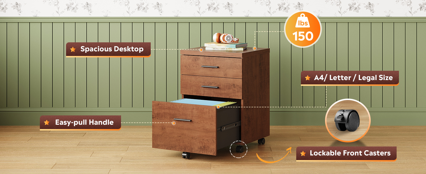 DEVAISE Walnut 2 or 3 Drawer File Cabinet