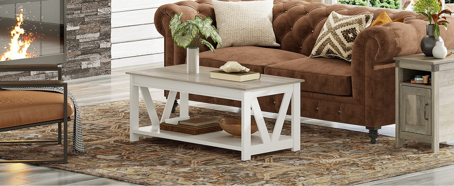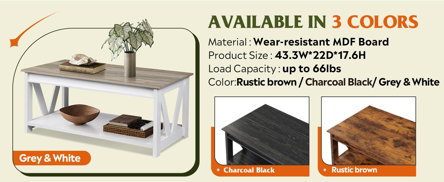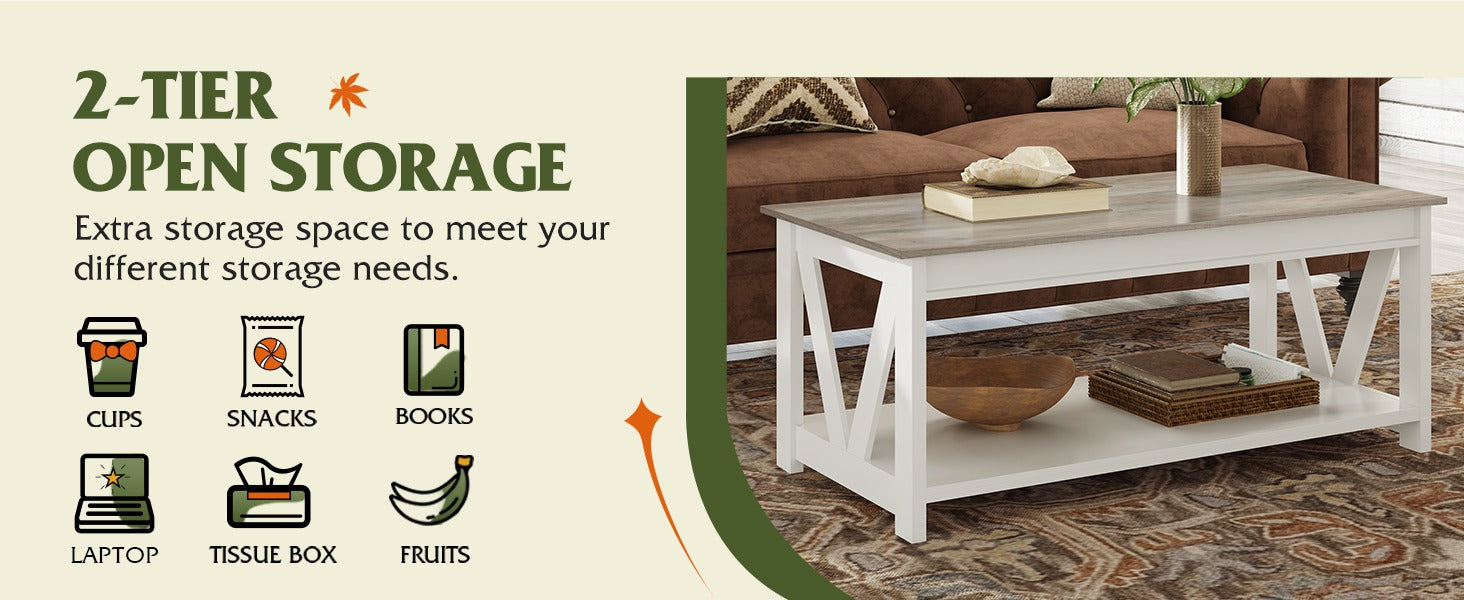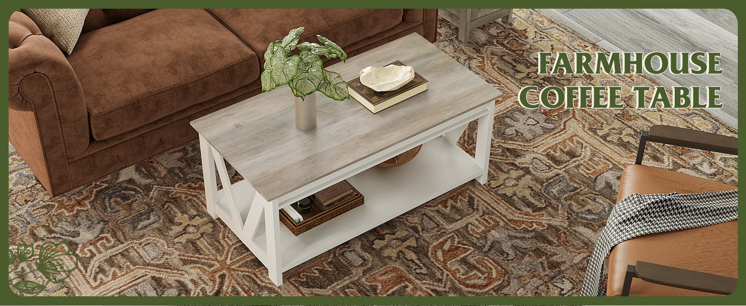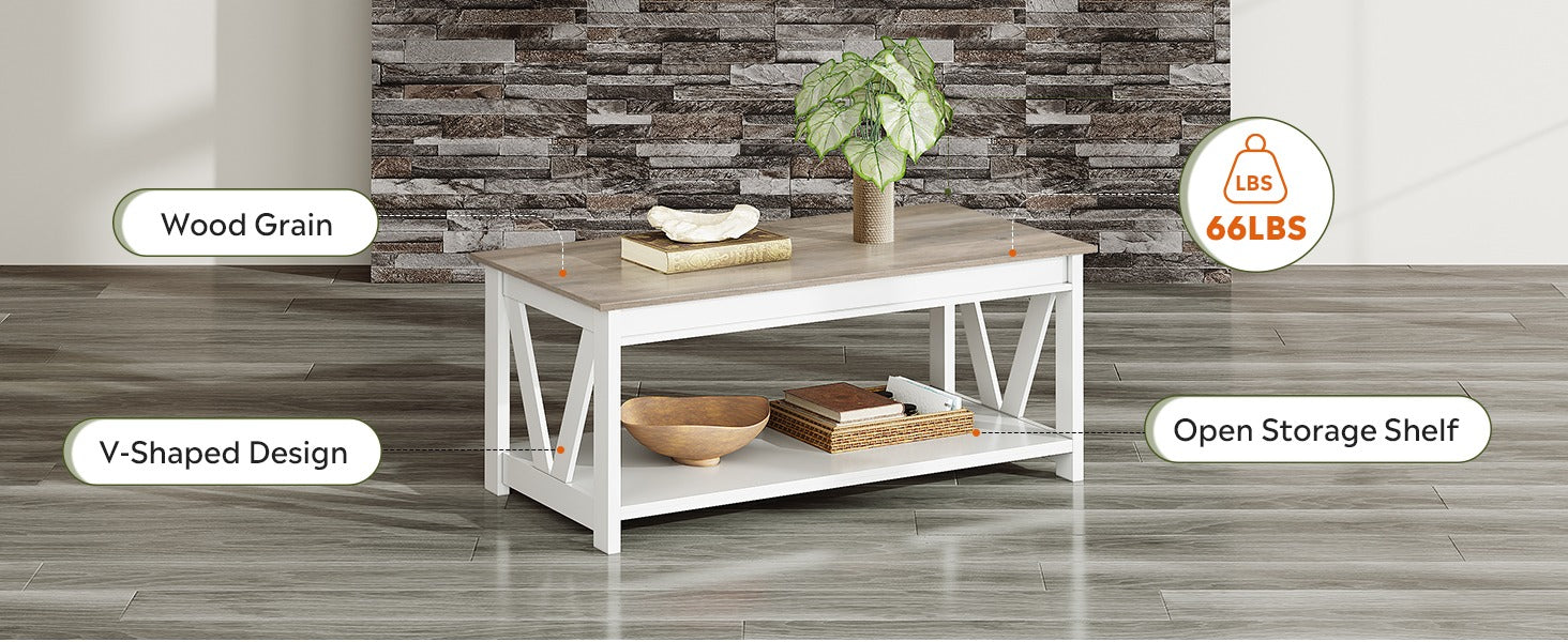 WLIVE Rectangle Farmhouse Wood Coffee Table with Storage Shelf